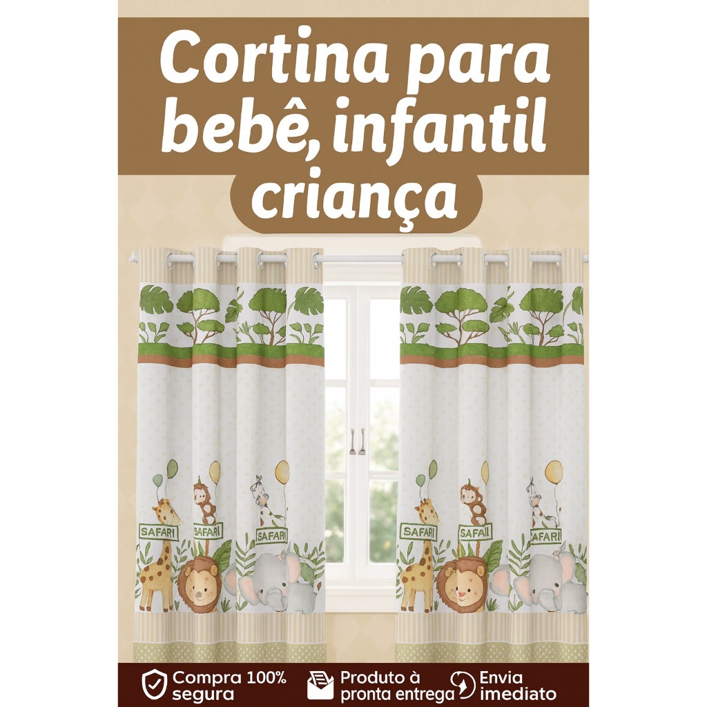Cortina Safari Para Quarto Bebê Infantil Criança 2,00 x 1,50 Decoração Promoção