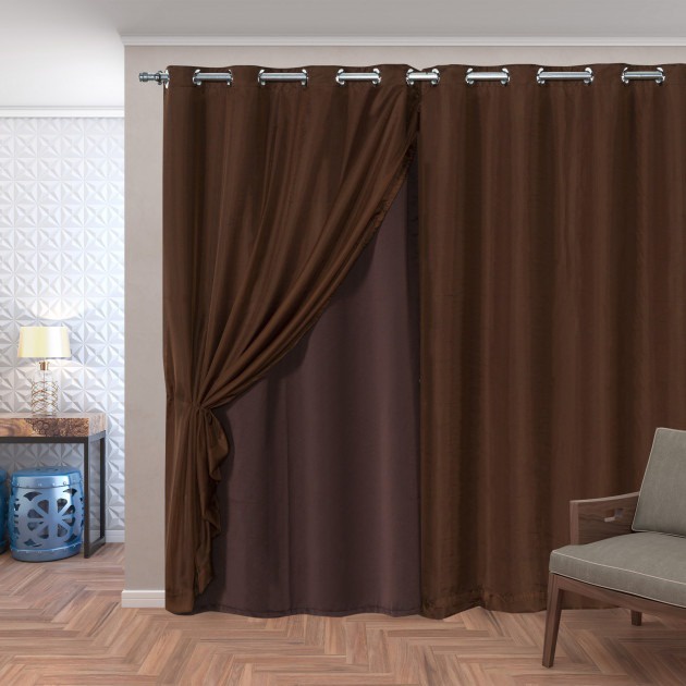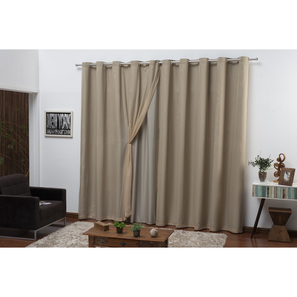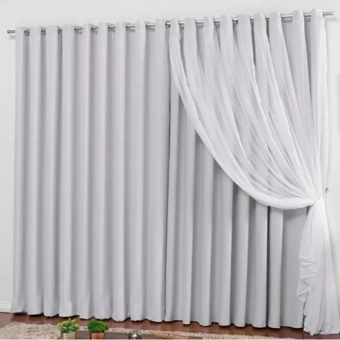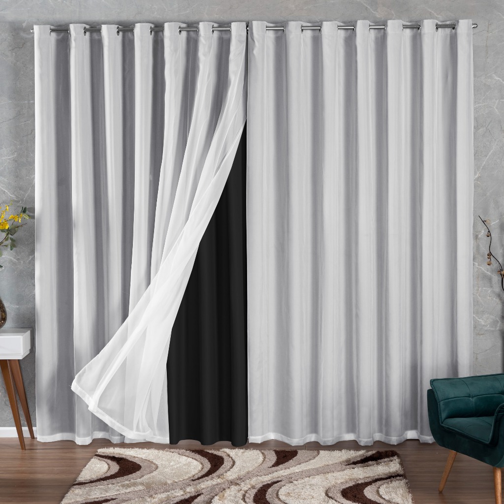 Cortina Blackout em Tecido Grosso 4,00 X 2,80 Com Voil Sala Quarto Corta Luz