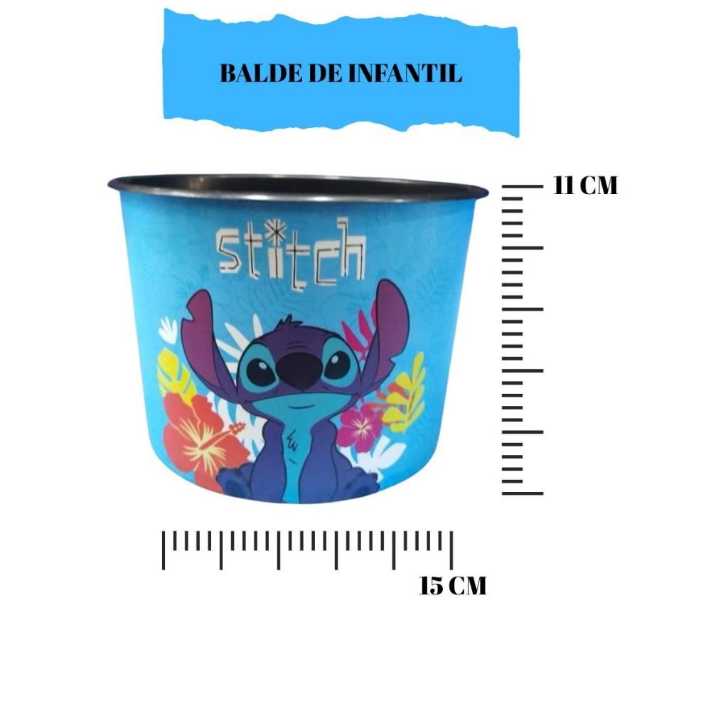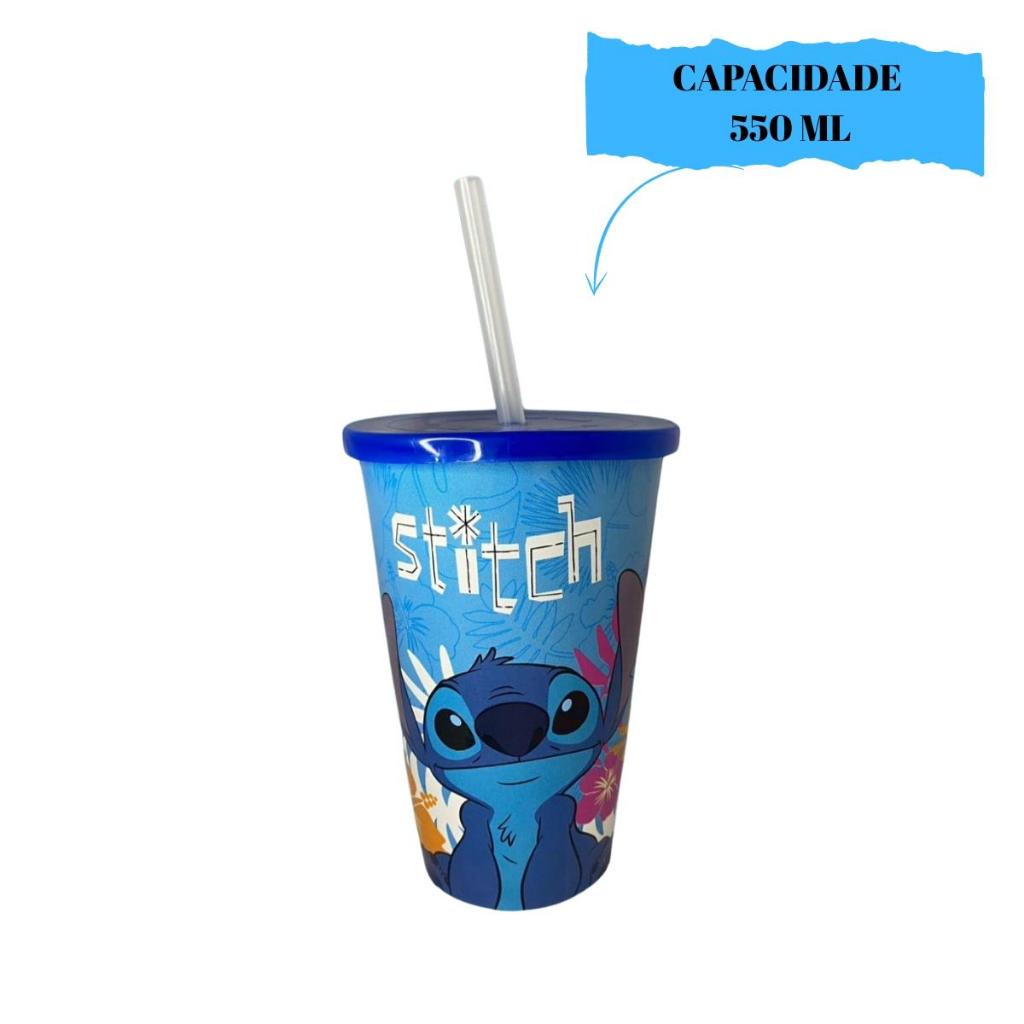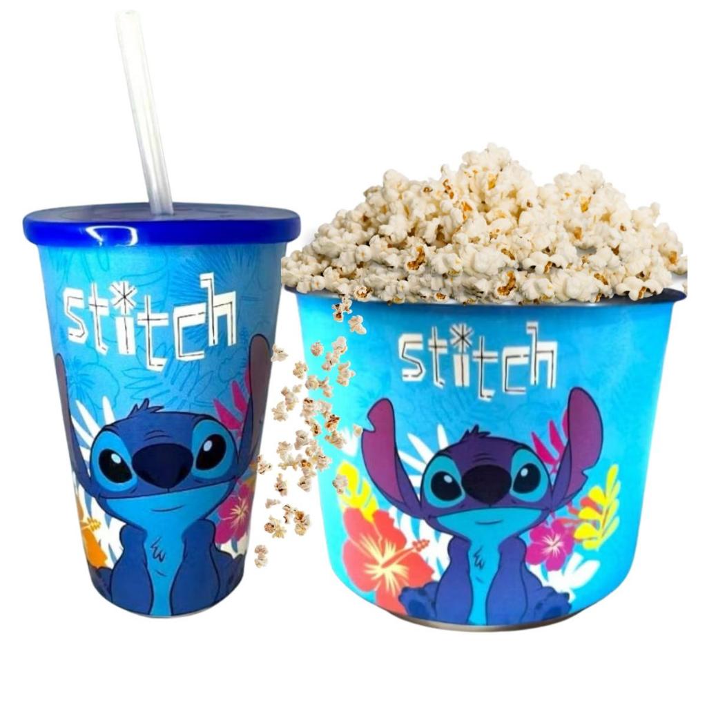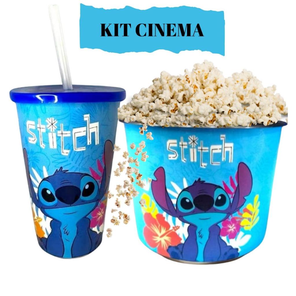 Copo Stitch Com Canudo 550ML + Balde De Pipoca Pipoqueira Stitch 1,5 Litros Kit Cinema Divertido