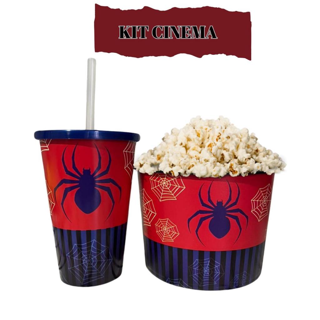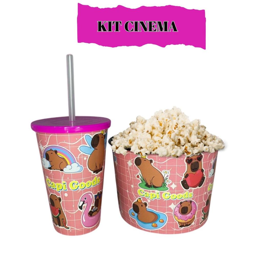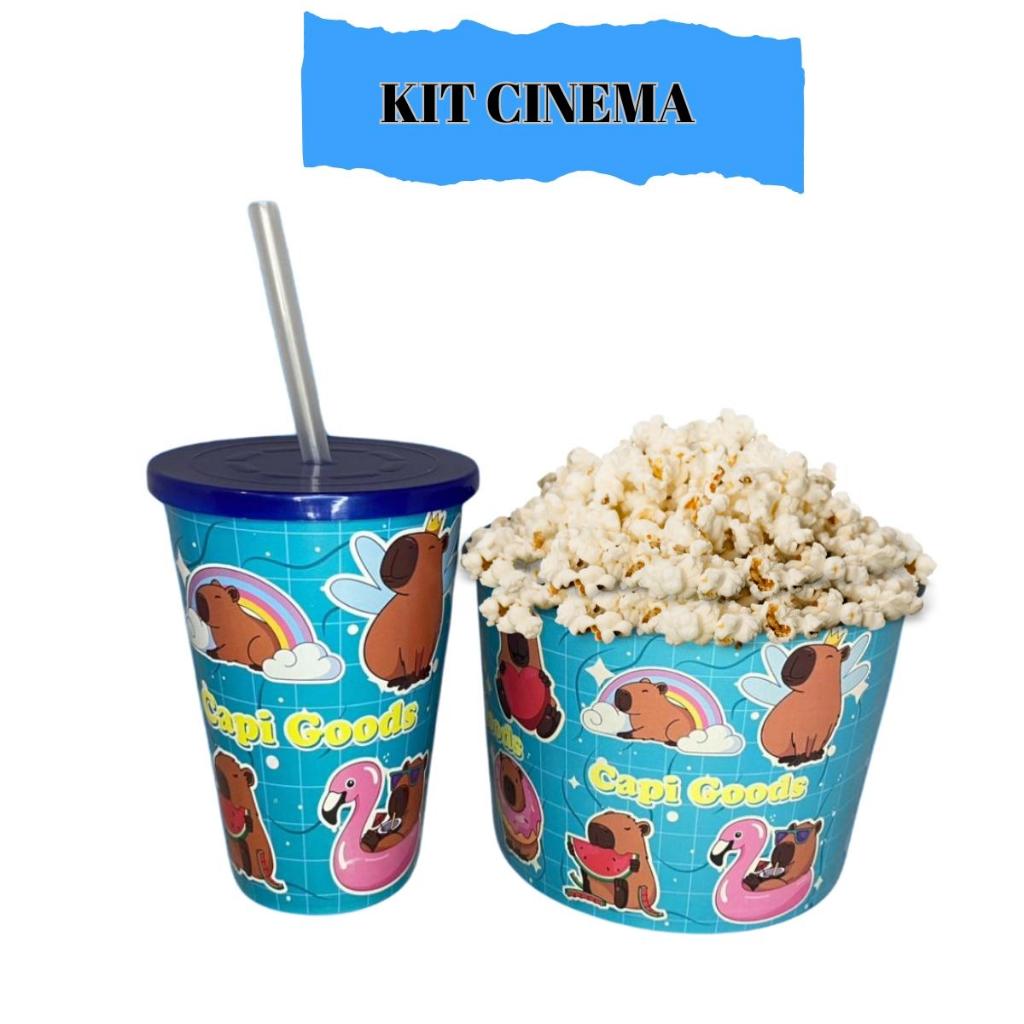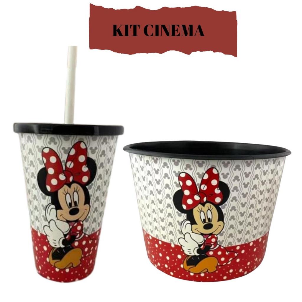 Copo Stitch Com Canudo 550ML + Balde De Pipoca Pipoqueira Stitch 1,5 Litros Kit Cinema Divertido