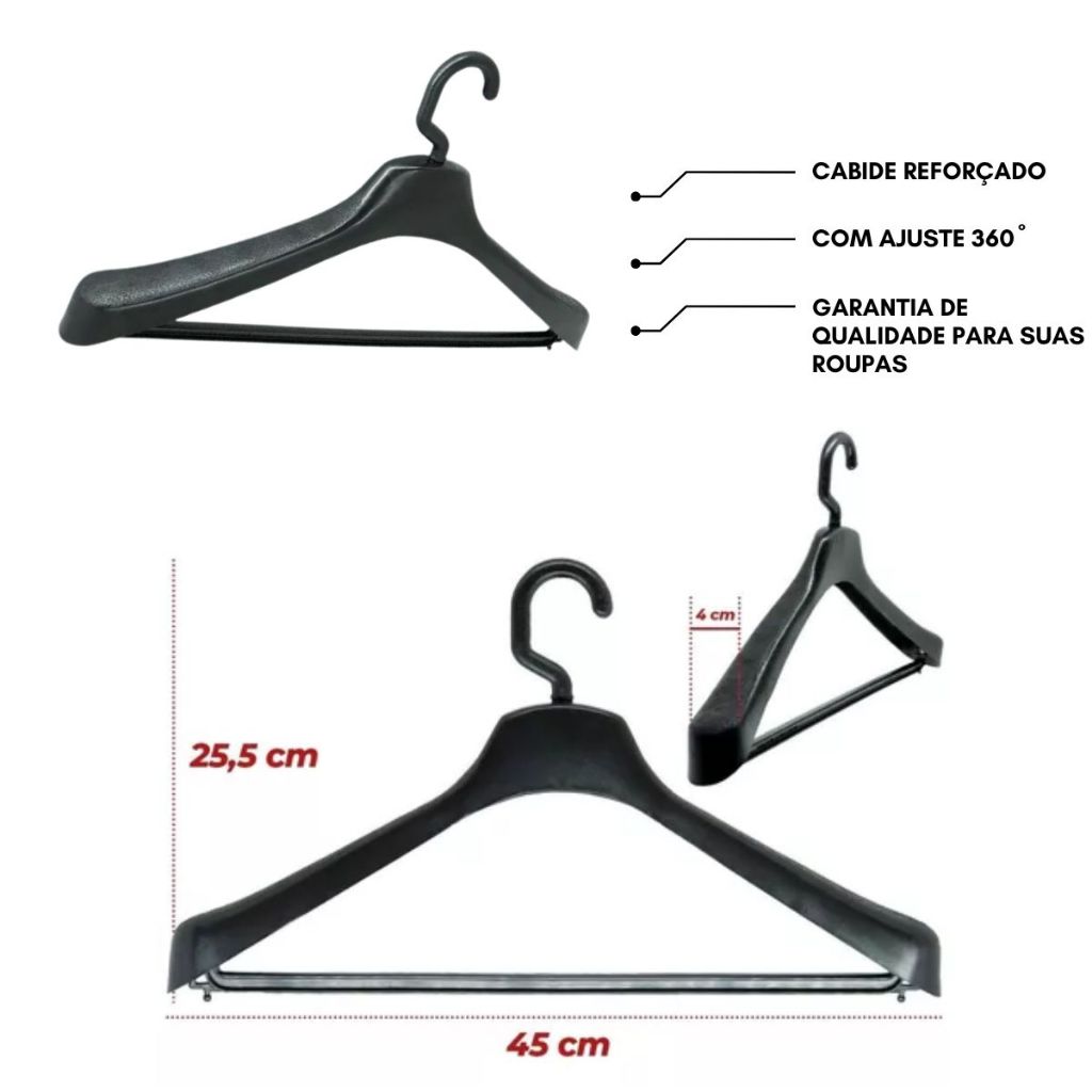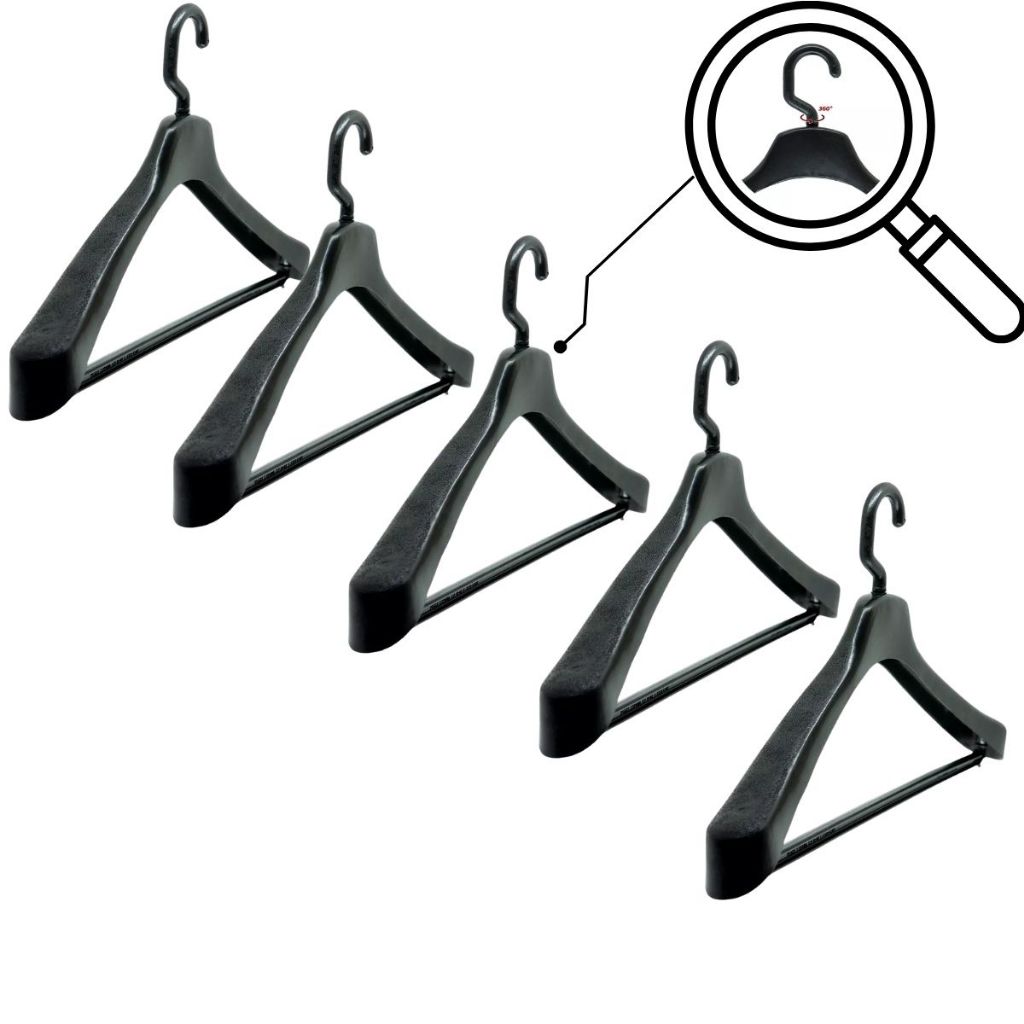 Cabide Kit 5 Unidades Utilitário Camisas, Calças, Coletes, Terno - Gancho Giratório 360 Resistente