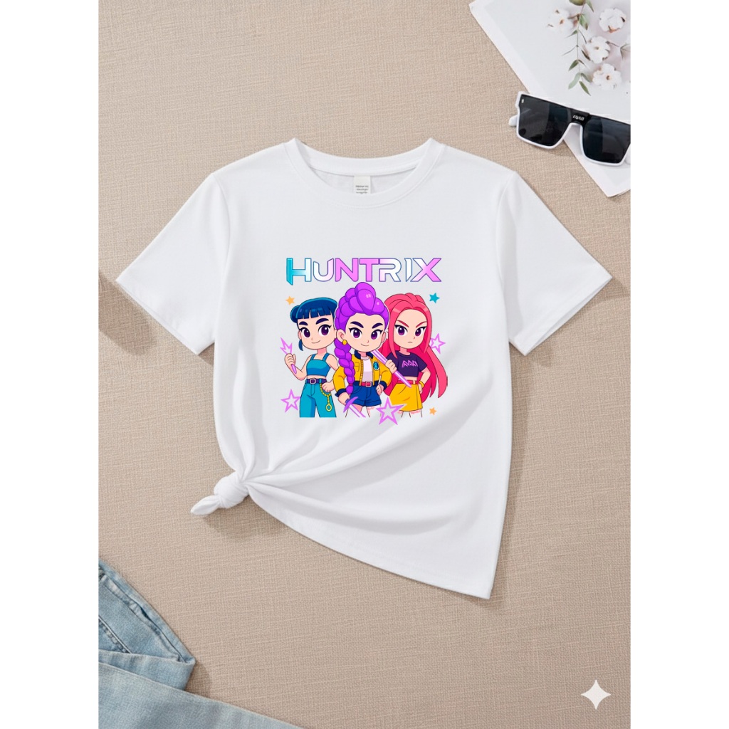 Camiseta Baby Look De Algodão Estampada Huntrix Tendencia
