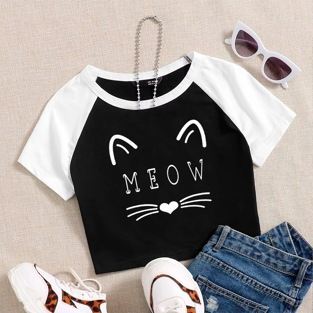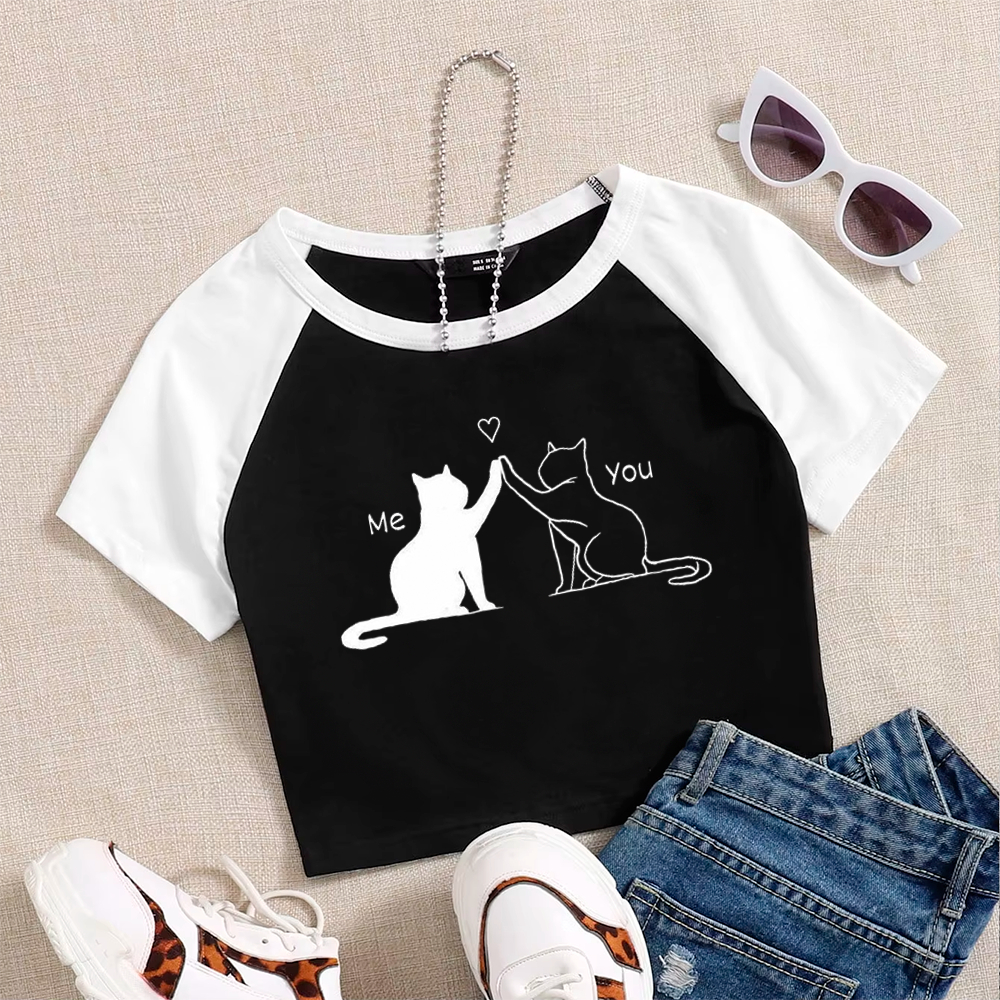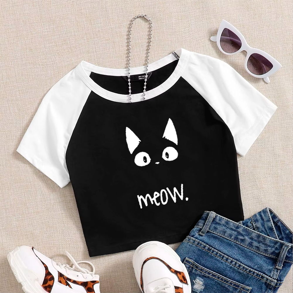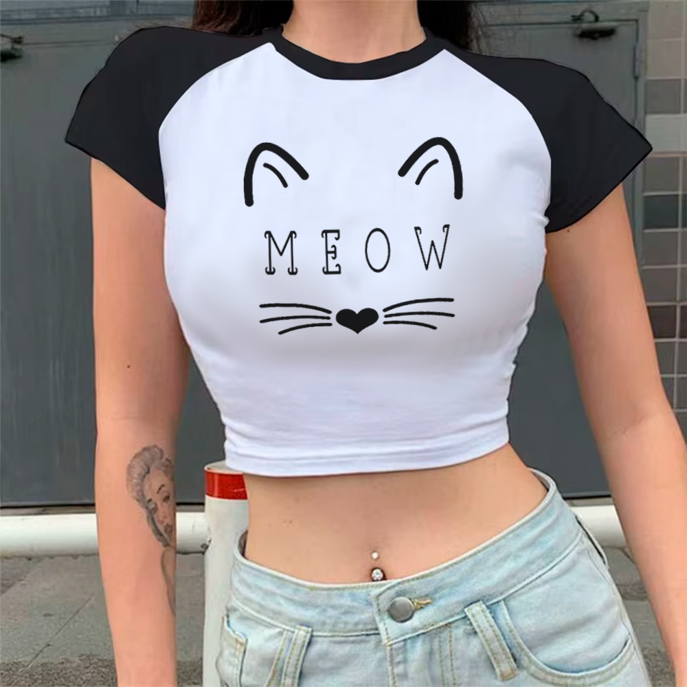 Cropped RAGLAN, Modelo GATOS MEOW - Moda Alternativa Y2K Blogueira Grunge Punk Streetwear