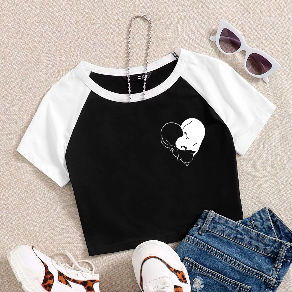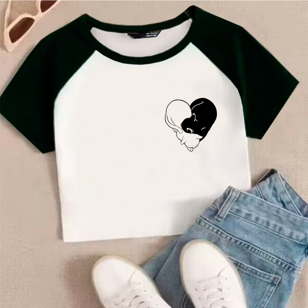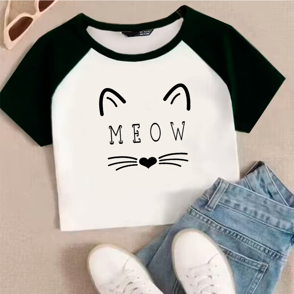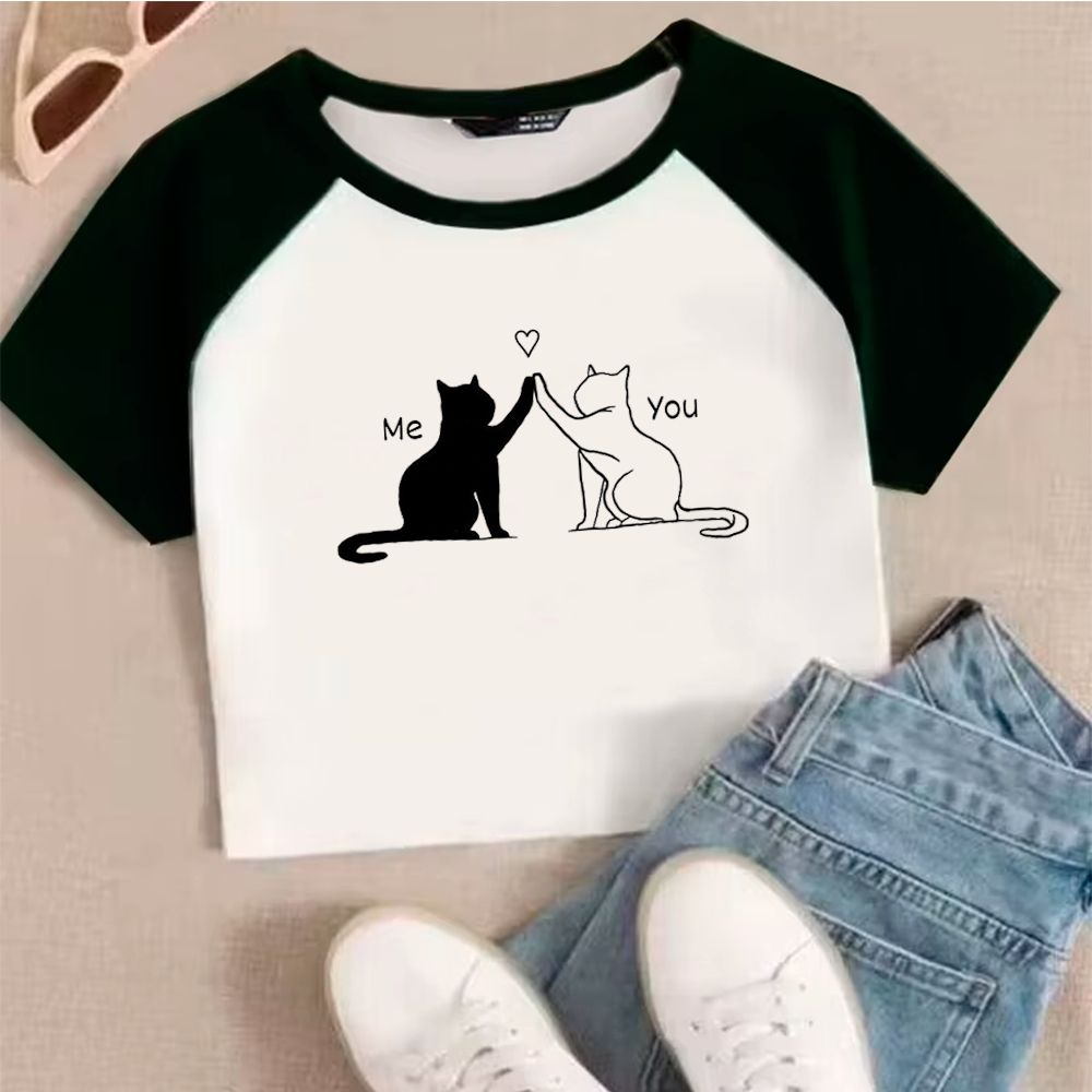 Cropped RAGLAN, Modelo GATOS MEOW - Moda Alternativa Y2K Blogueira Grunge Punk Streetwear