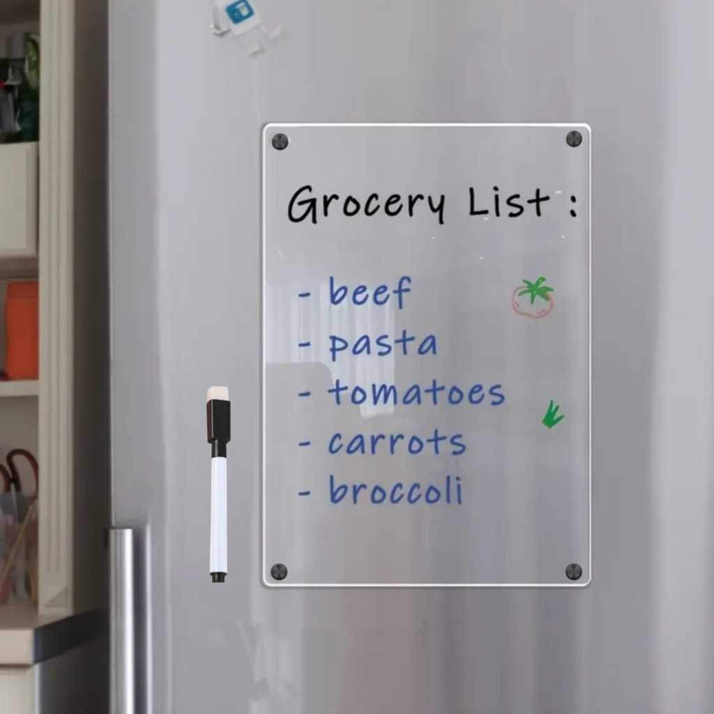 Imã de geladeira lousa magnética lembrete planner transparente acrilico + caneta escreve apaga