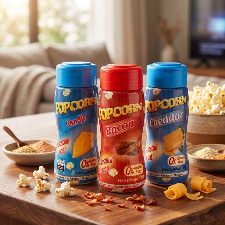 Combo Popcorn - 03 Sabores - Cheddar, Bacon e Queijo 100g Cada