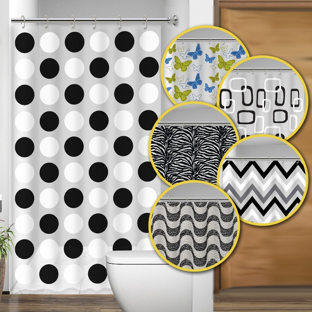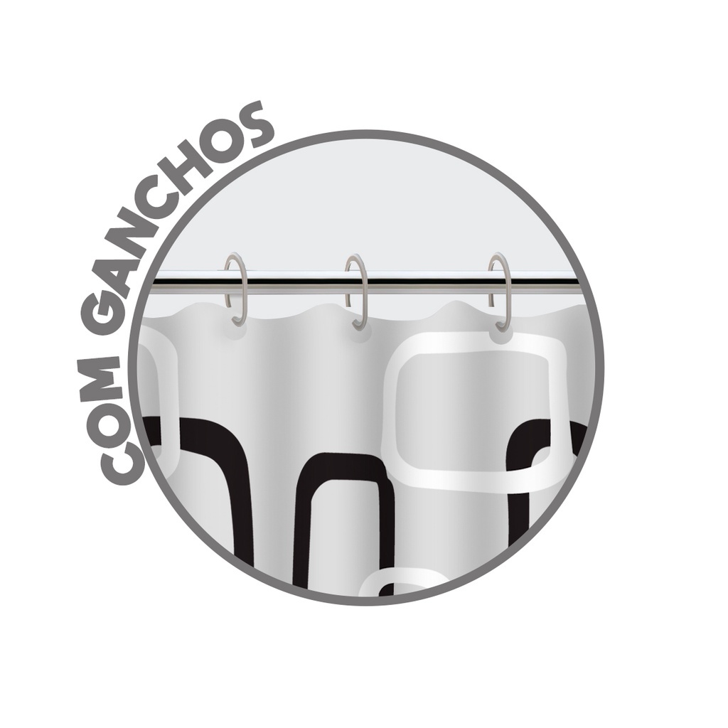 Cortina de Box para Banheiro Estampada c/ Gancho 100% PVC Antimofo 1,38x1,98m