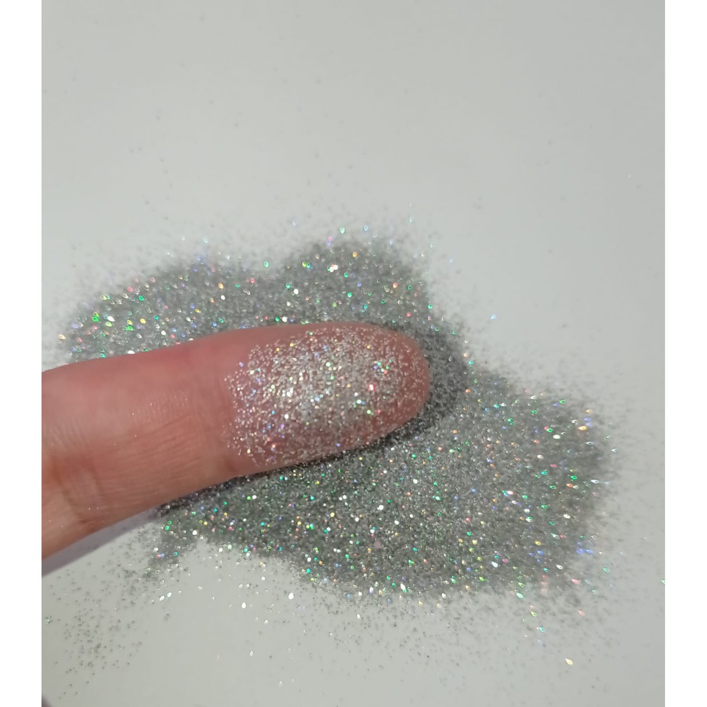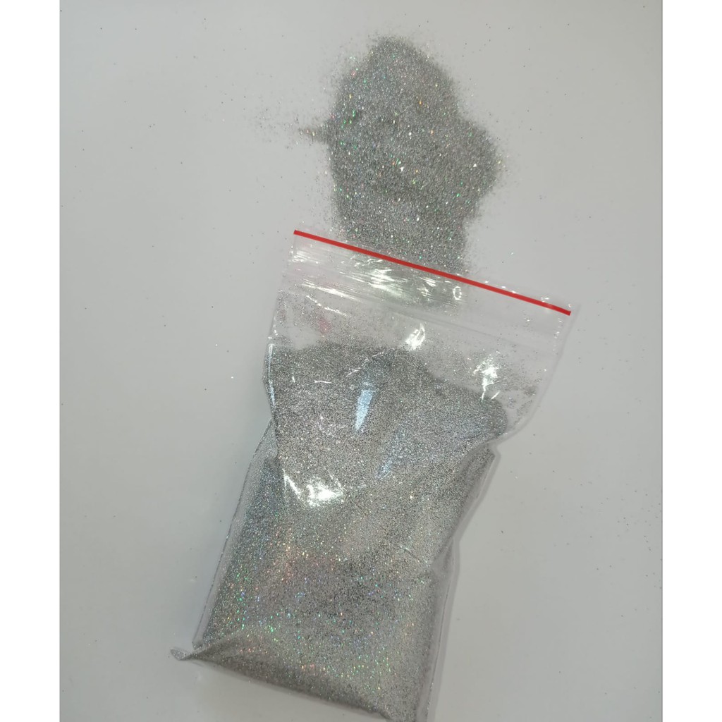100g Glitter Poliéster Prata Holográfico TR ou Mells
