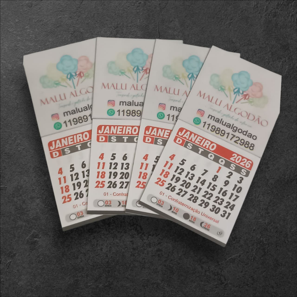 Mini calendario 2026 personalizado com imã 5x10 com o tema q deseja logo ou frases