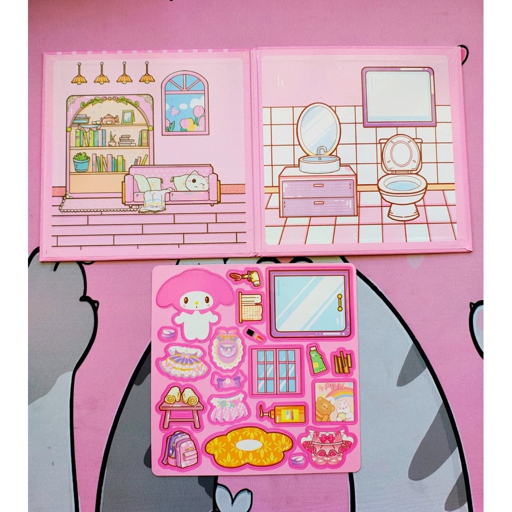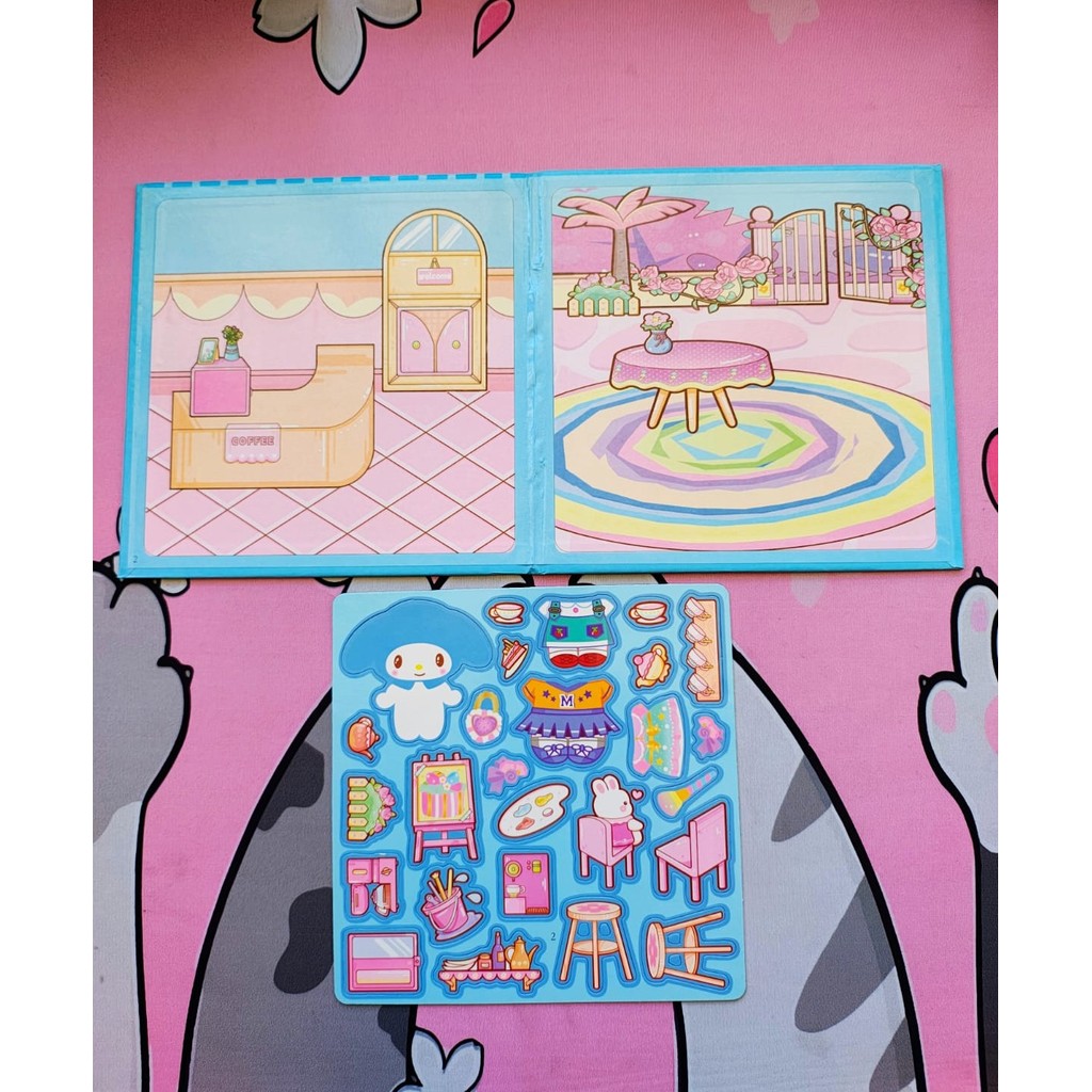 Livro cenário interativo com imã e capa dura da My Melody e Kuromi