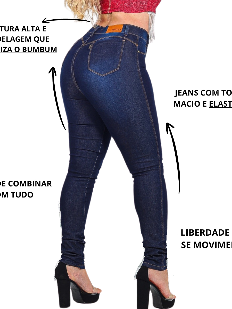 Calça Jeans Com Lycra Feminina Cintura Alta