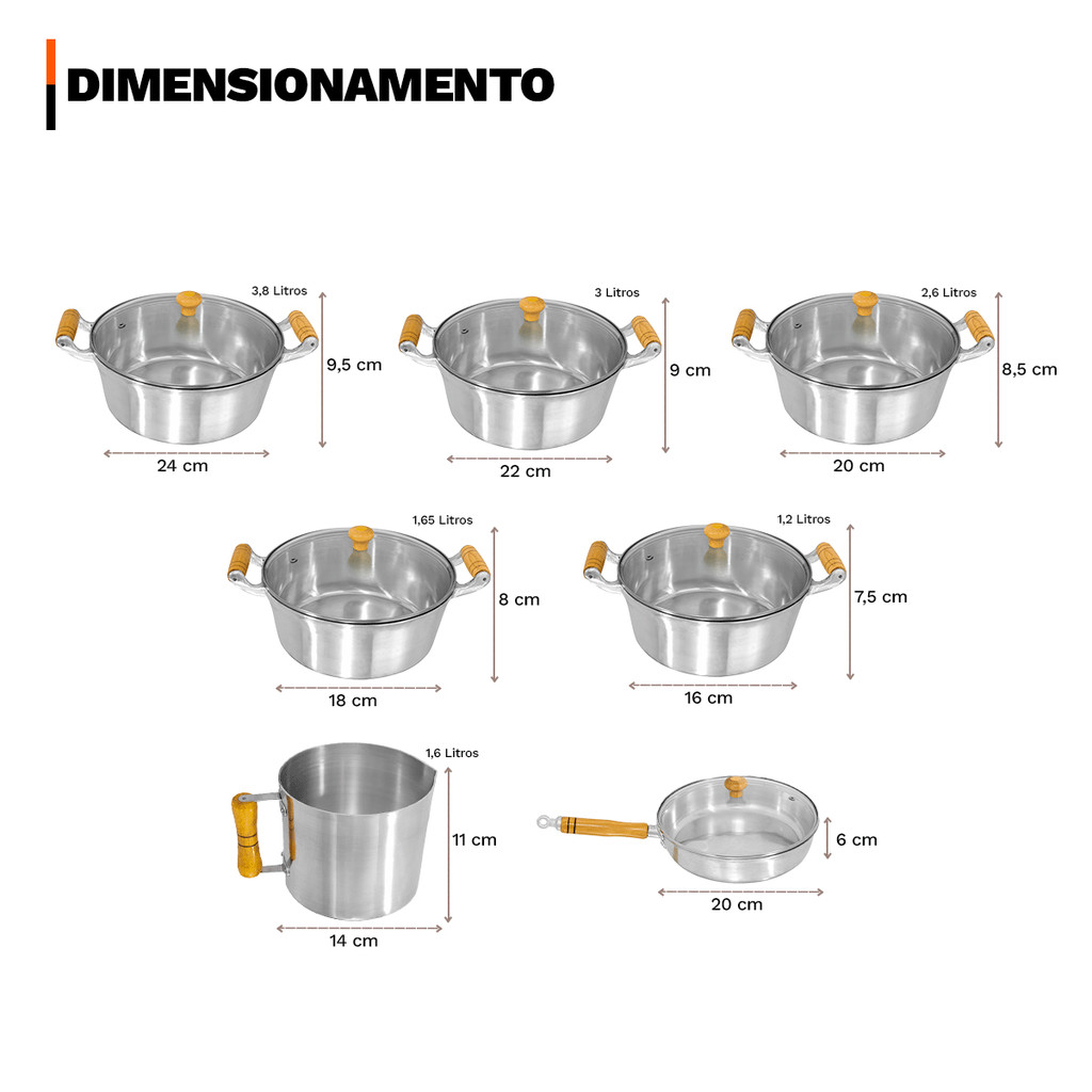 Conjunto de Caçarolas 7 Peças Alumínio Fundido Grosso + Frigideira e Canecão