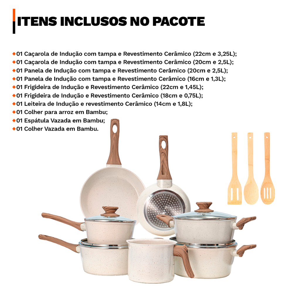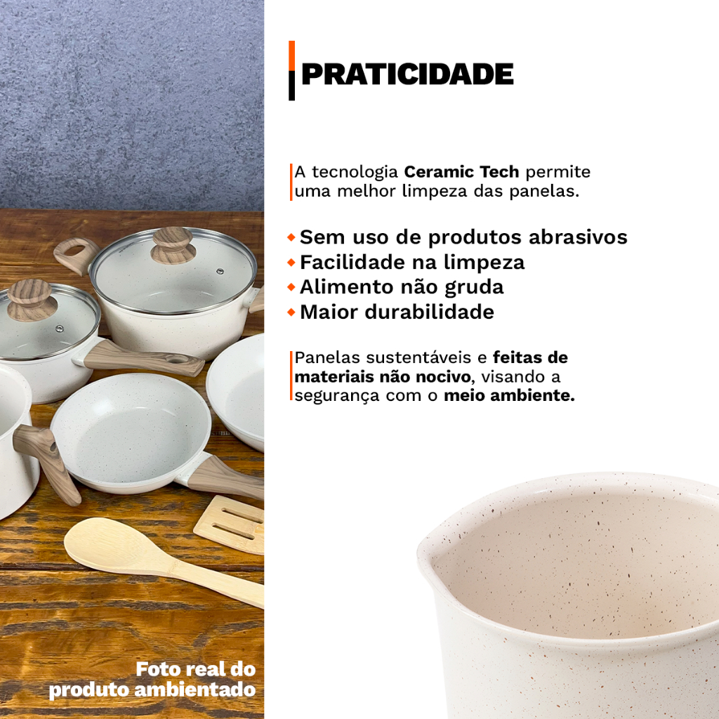 Jogo de Panelas 10 Peças Revestimento Cerâmico PPG Antiaderente Indução e Gás Premium