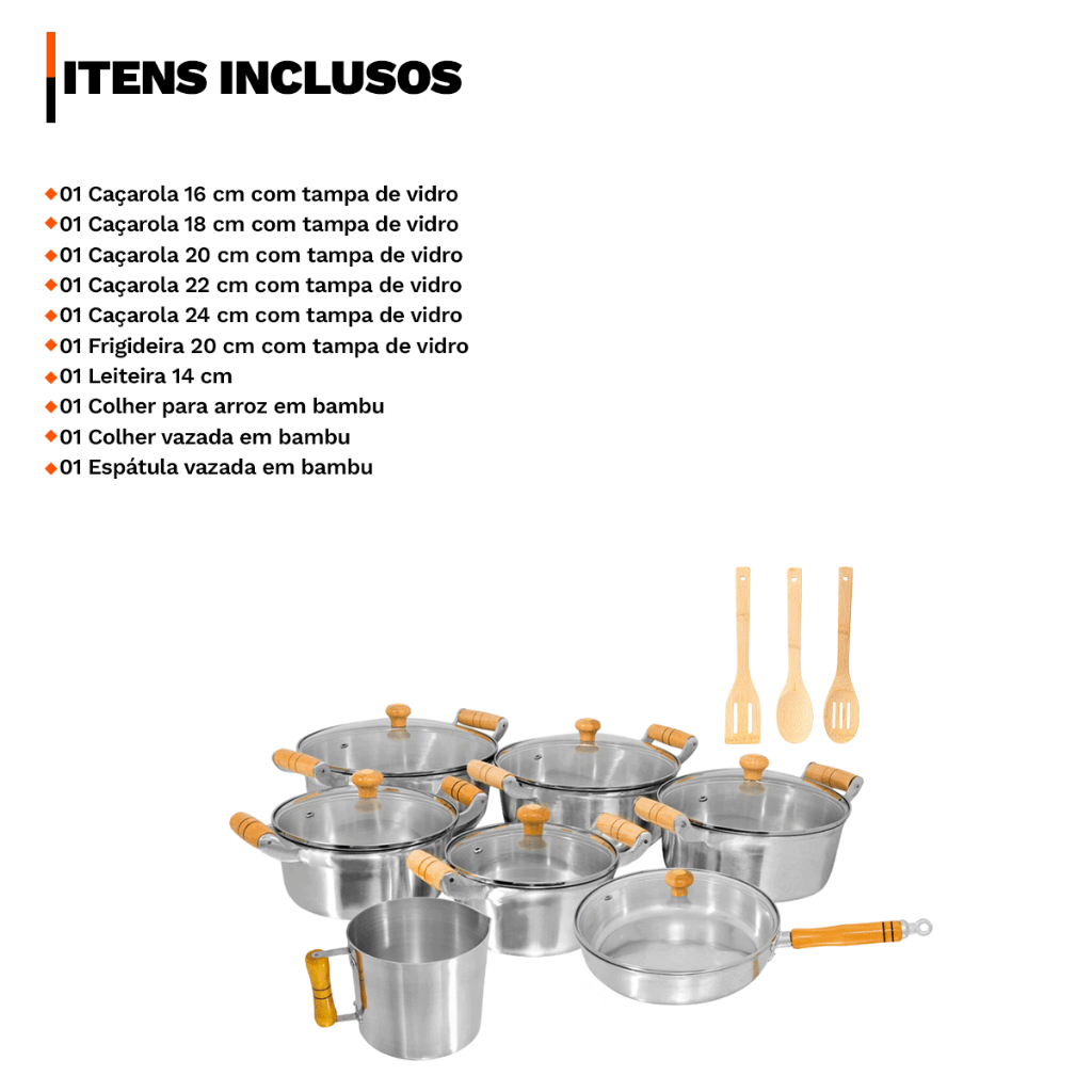 Jogo de Panelas Caçarolas 10 Peças Alumínio Fundido Grosso Batido Polido
