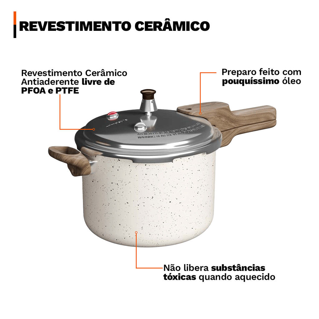 Panela de Pressão Antiaderente 4,2L Revestimento Cerâmico Indução