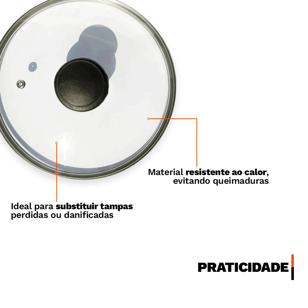 Tampa de Vidro Temperado 20/21 Cm Avulsa Para Panela Frigideira Caçarola