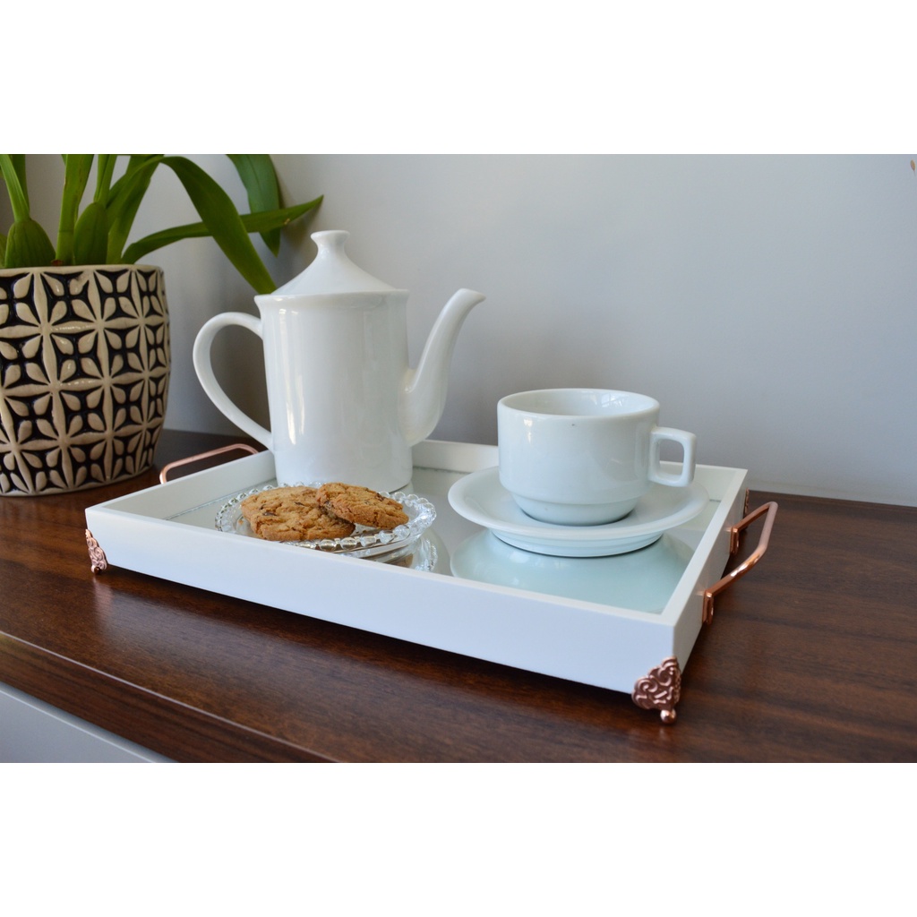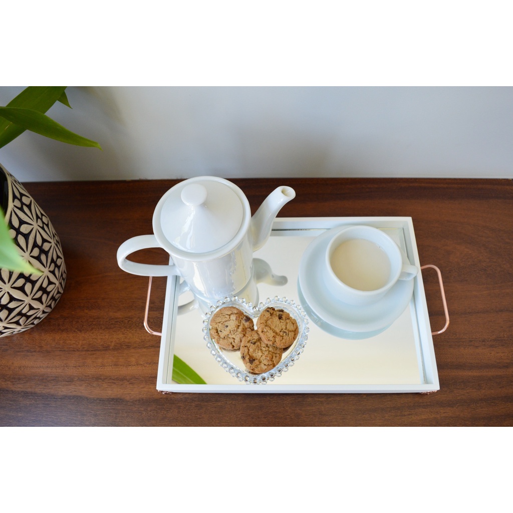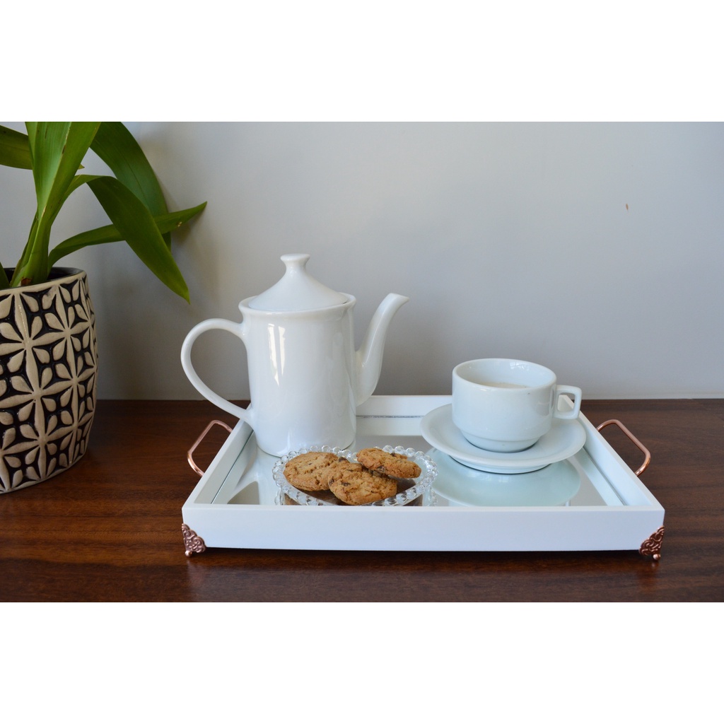 Bandeja Branca Decoração Bancada Café Luxo Home B221 Rose