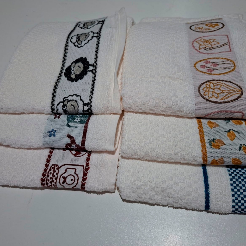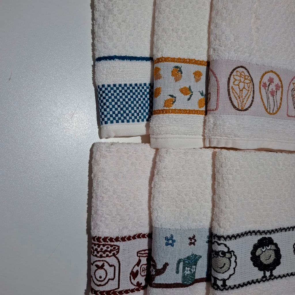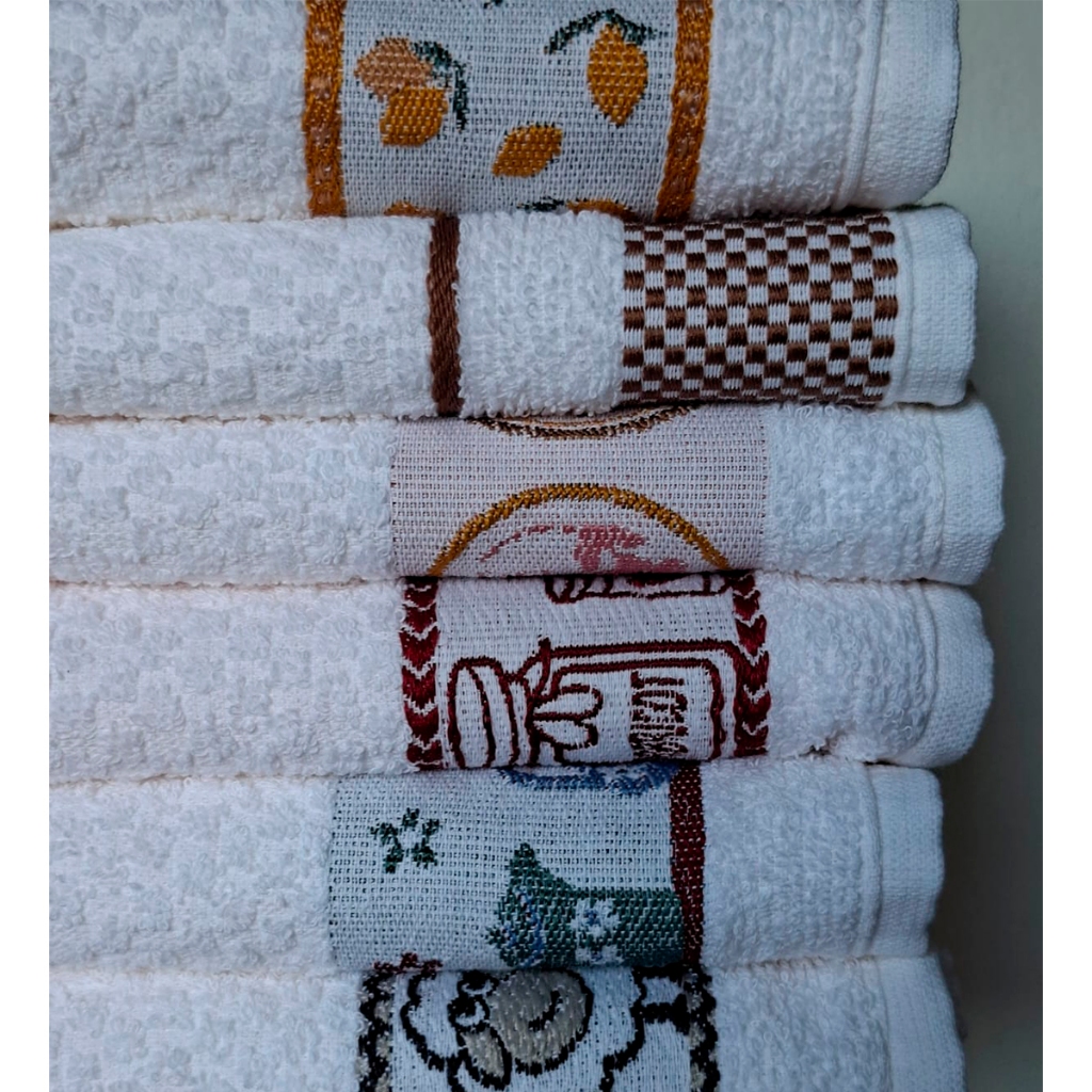kit 5 Toalha Pano De Copa Prato Atoalhado Jacquard Lmpeter 100% Algodão - 45x70cm