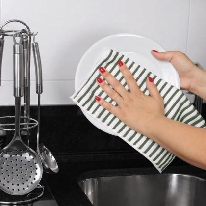 Pano Multiuso Buettner Enxuga e Limpa Verde Musgo Microfibra 3 Peças Cooking