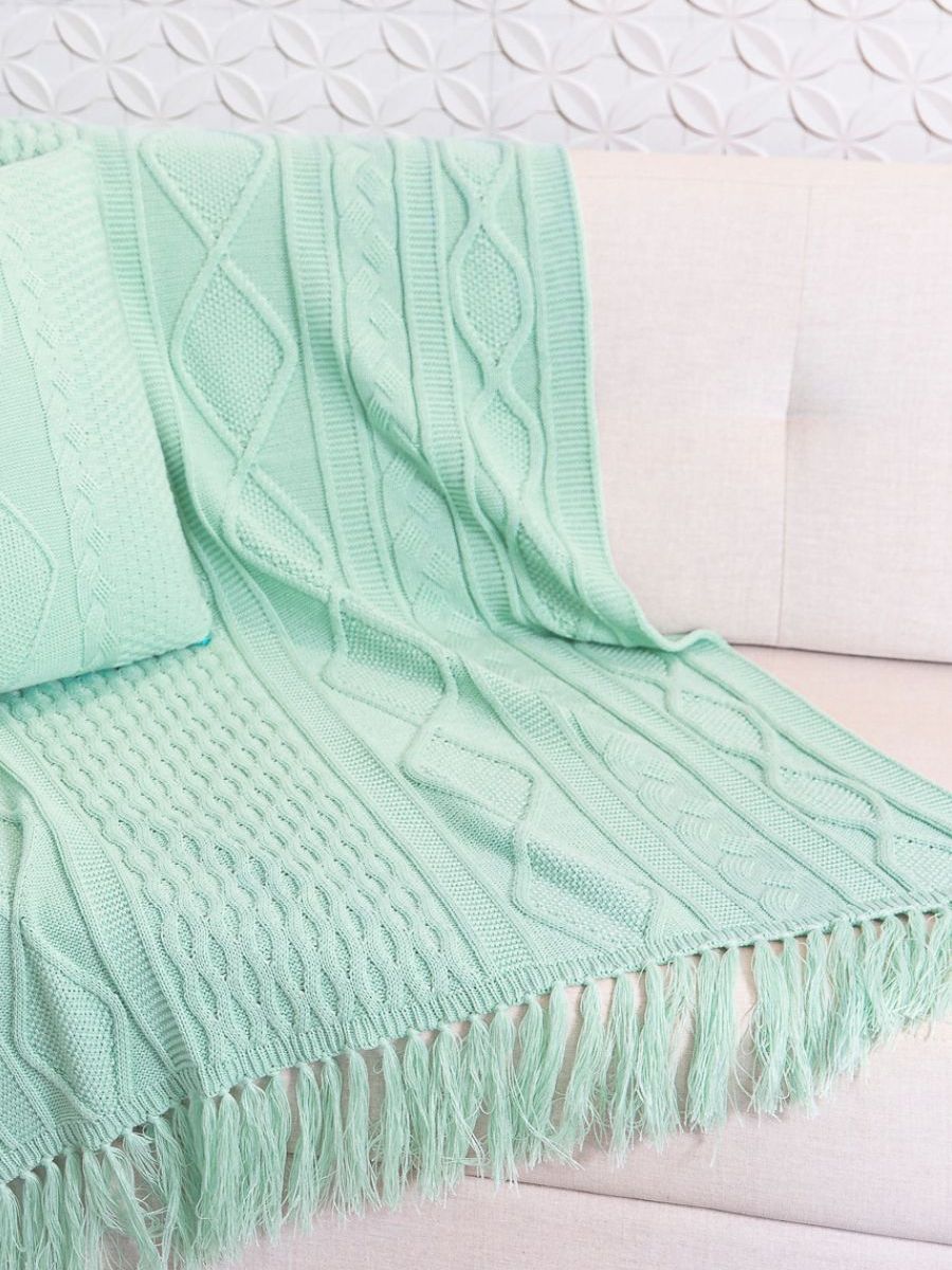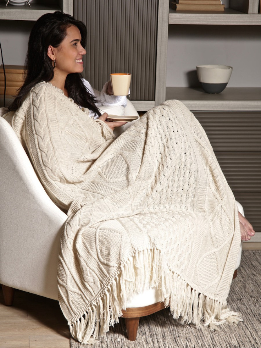 Manta Decorativa Tricot Com Franja Para Sofa Sala Cama 120x150cm Chicago