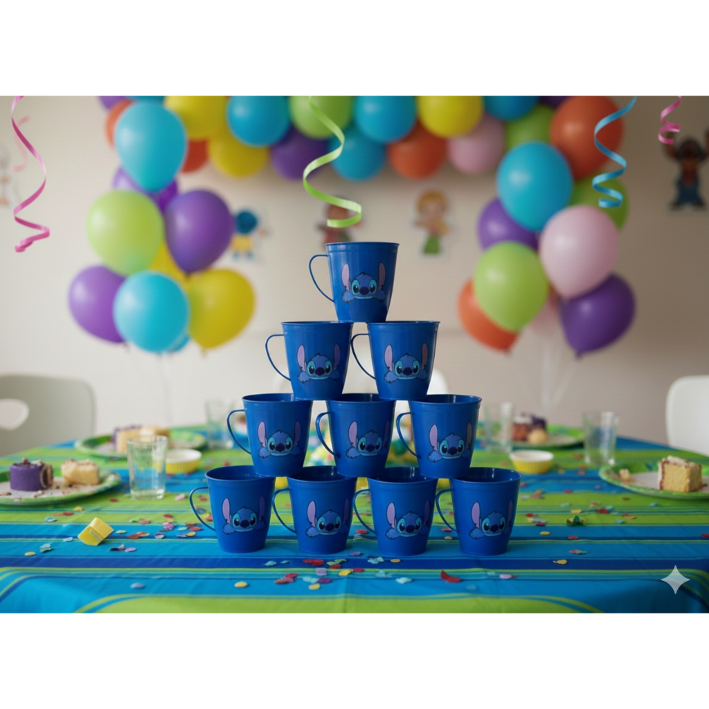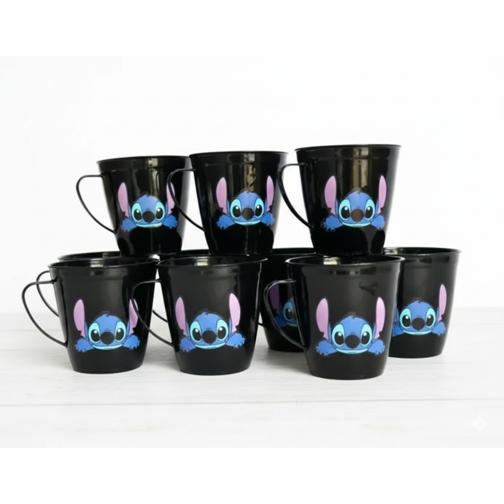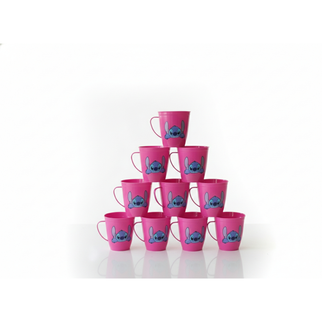 Kit 50 Canecas Stitch Plástico 300ml Escolar Merenda Festas Lembrancinhas Aniversários Personagem