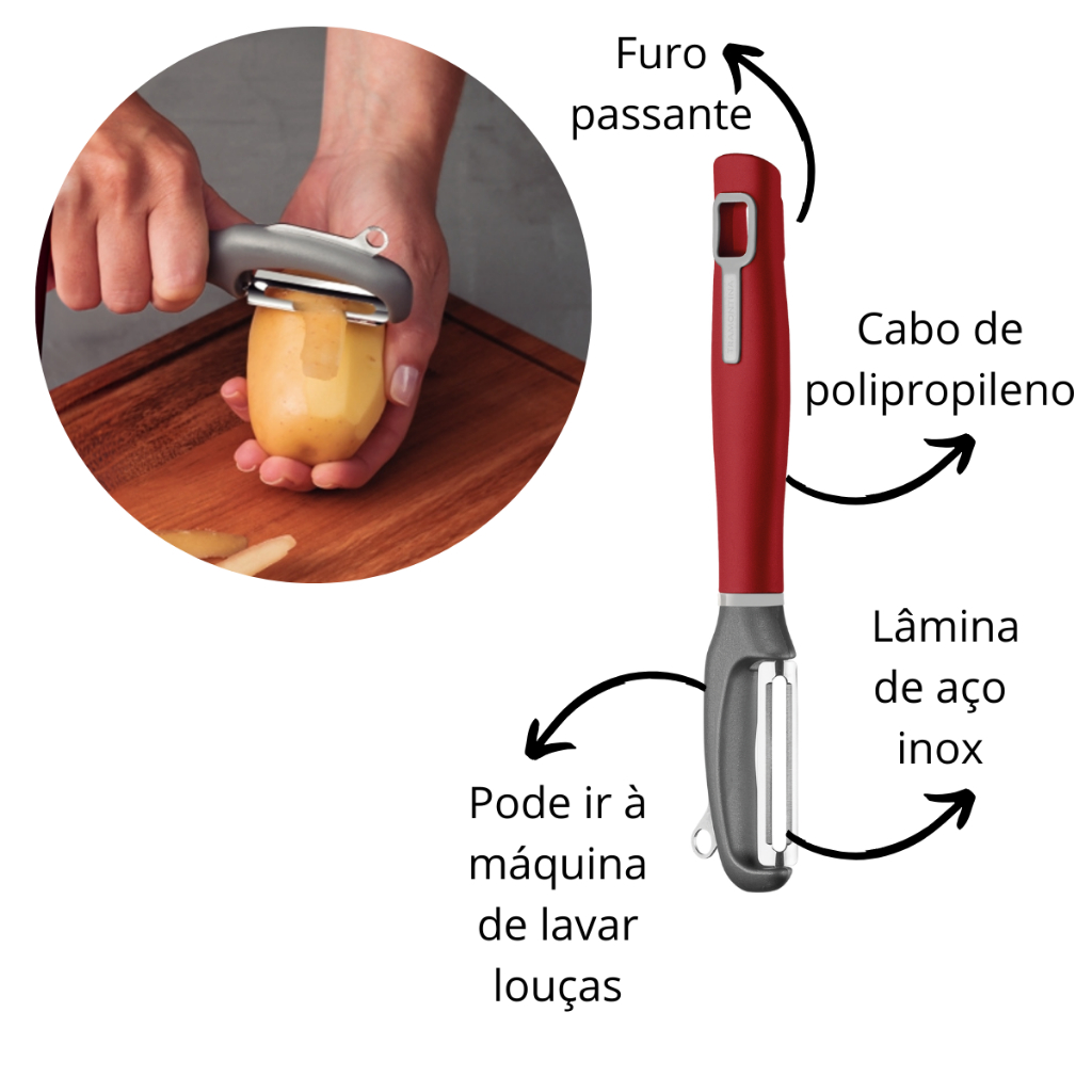 Descascador Para legumes e Frutas Inox Tramontina Verano - 3 Funções