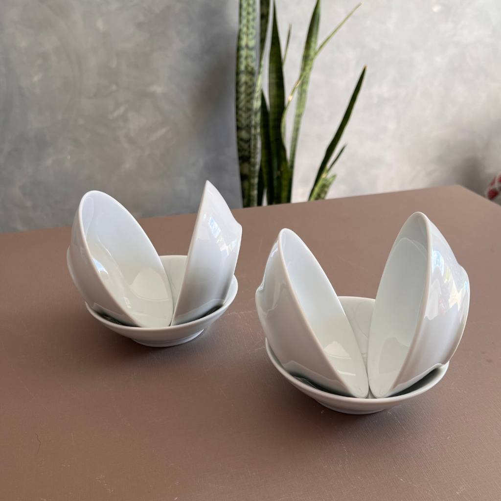kit Bowl Saladeira Porcelana Branca Schmidt 8 pç