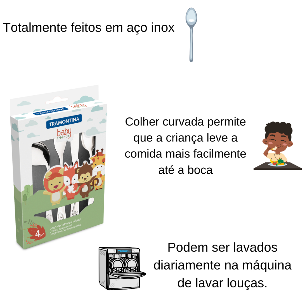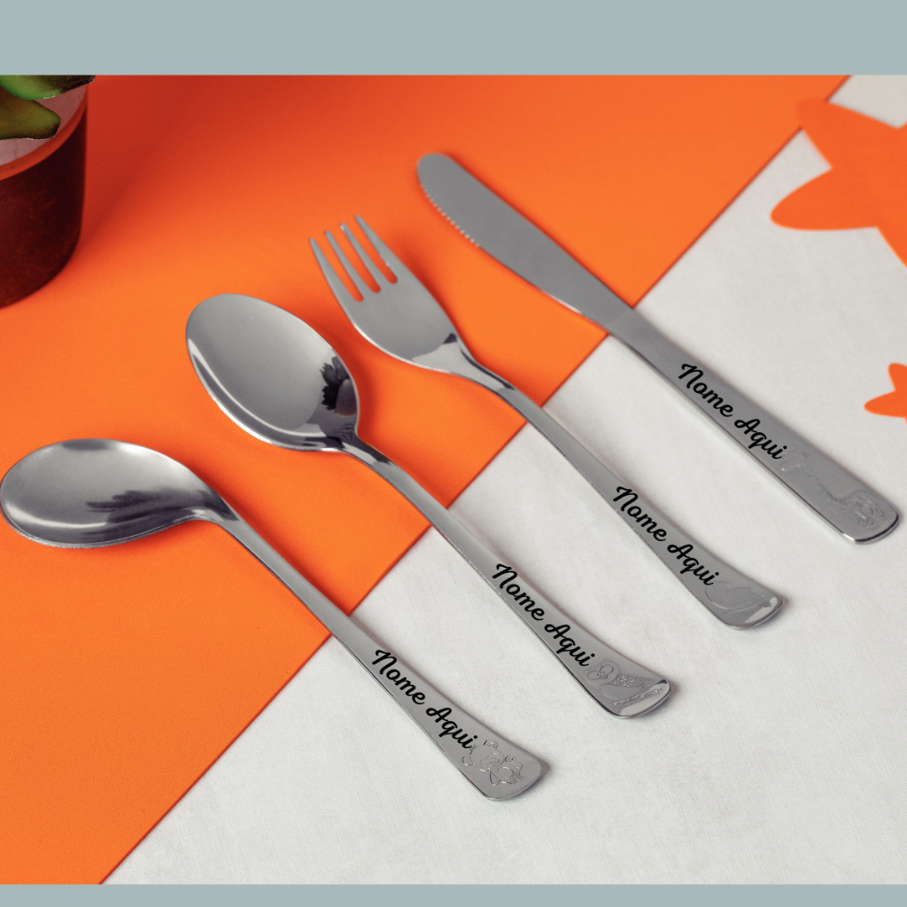 Jogo Talheres Infantil Tramontina Baby Aço Inox 4pc Com Nome Gravado Laser