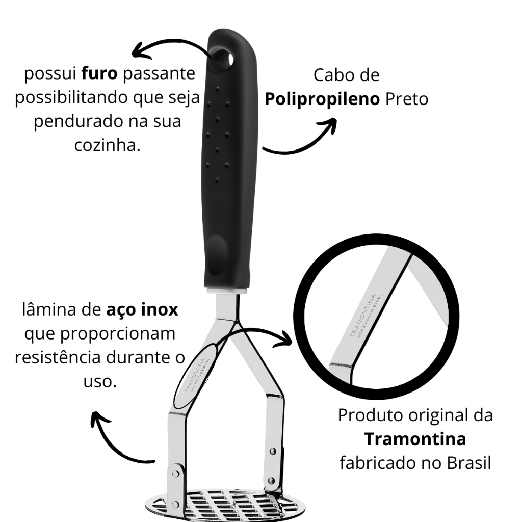 Kit Descascador de Legumes e Frutas Tramontina + Amassador de Batatas Inox