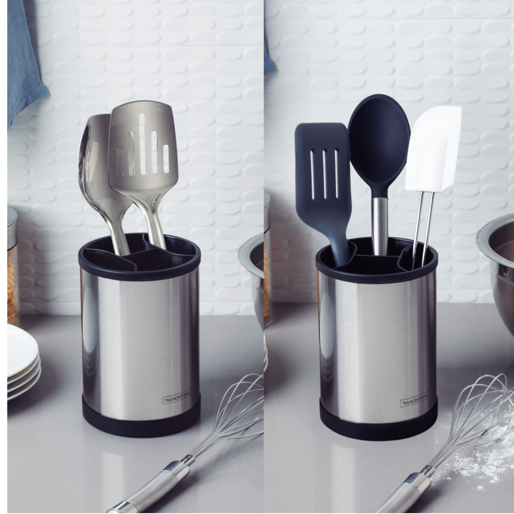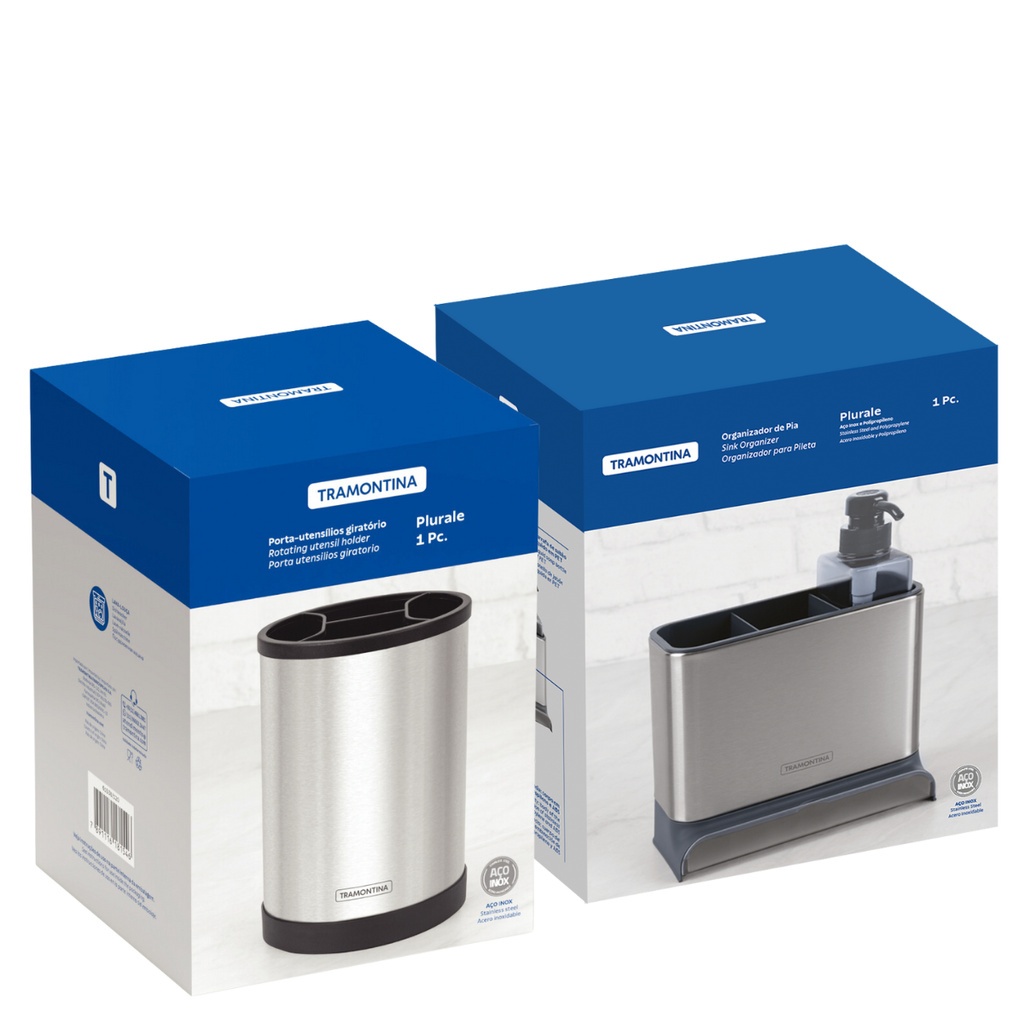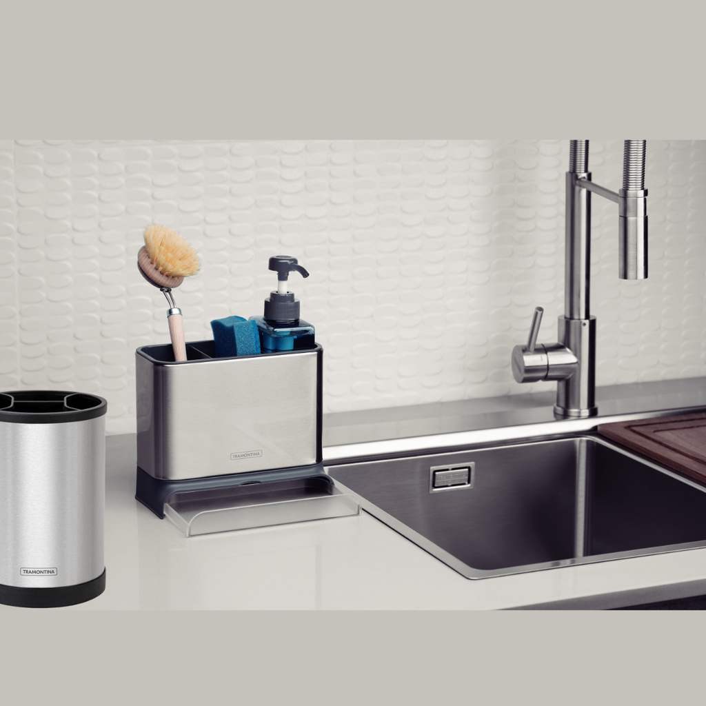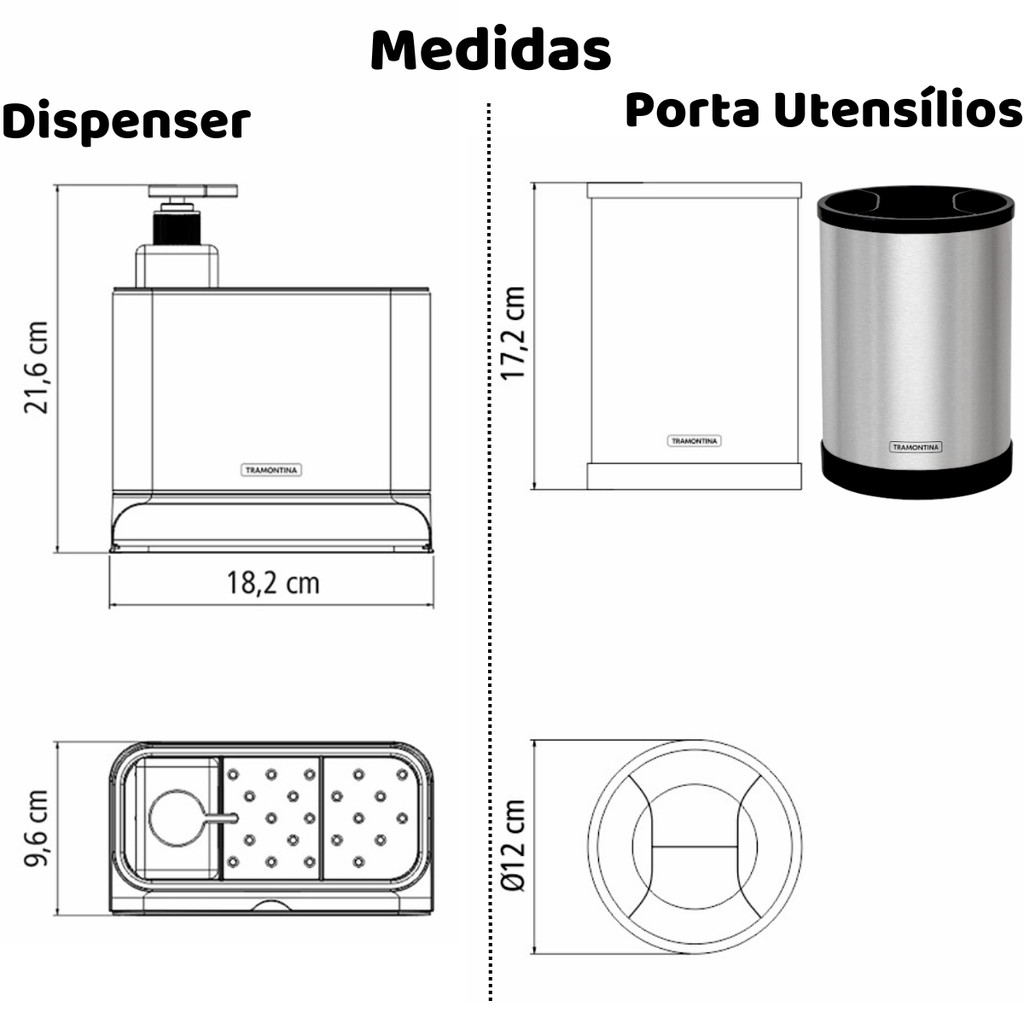 Dispenser Sabão Detergente Tramontina E Porta Utensílios Inox Kit Cozinha