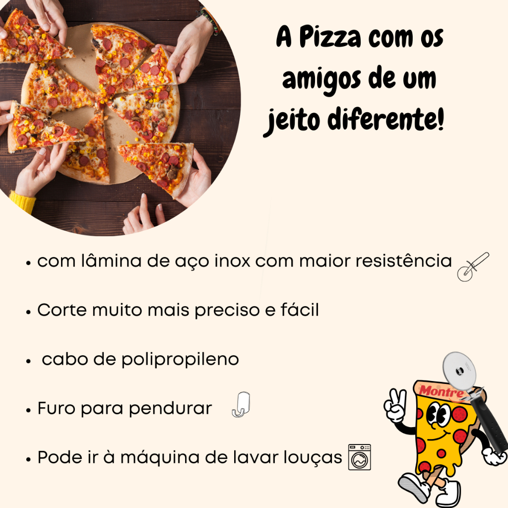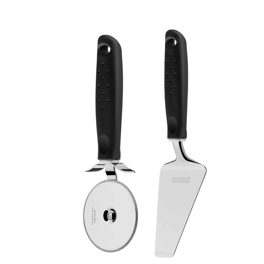 kit Cortador Pizza + Espátula Inox Tramontina Cabo Preto Utilíta