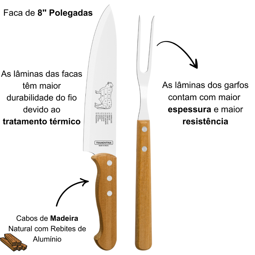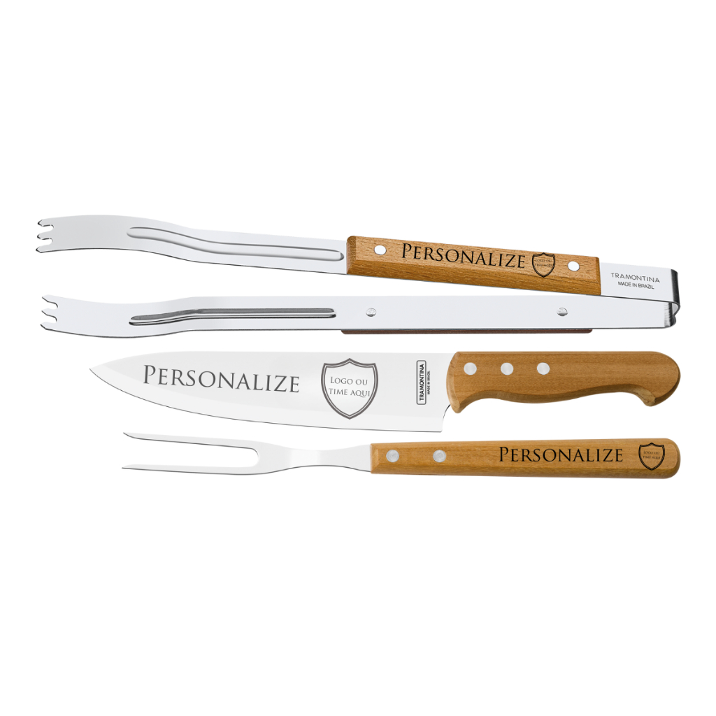 Kit Churrasco Tramontina Faca e Garfo Personalizados Nome Logo Aço Inox