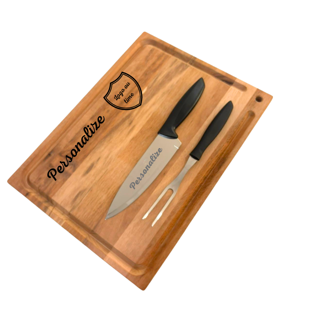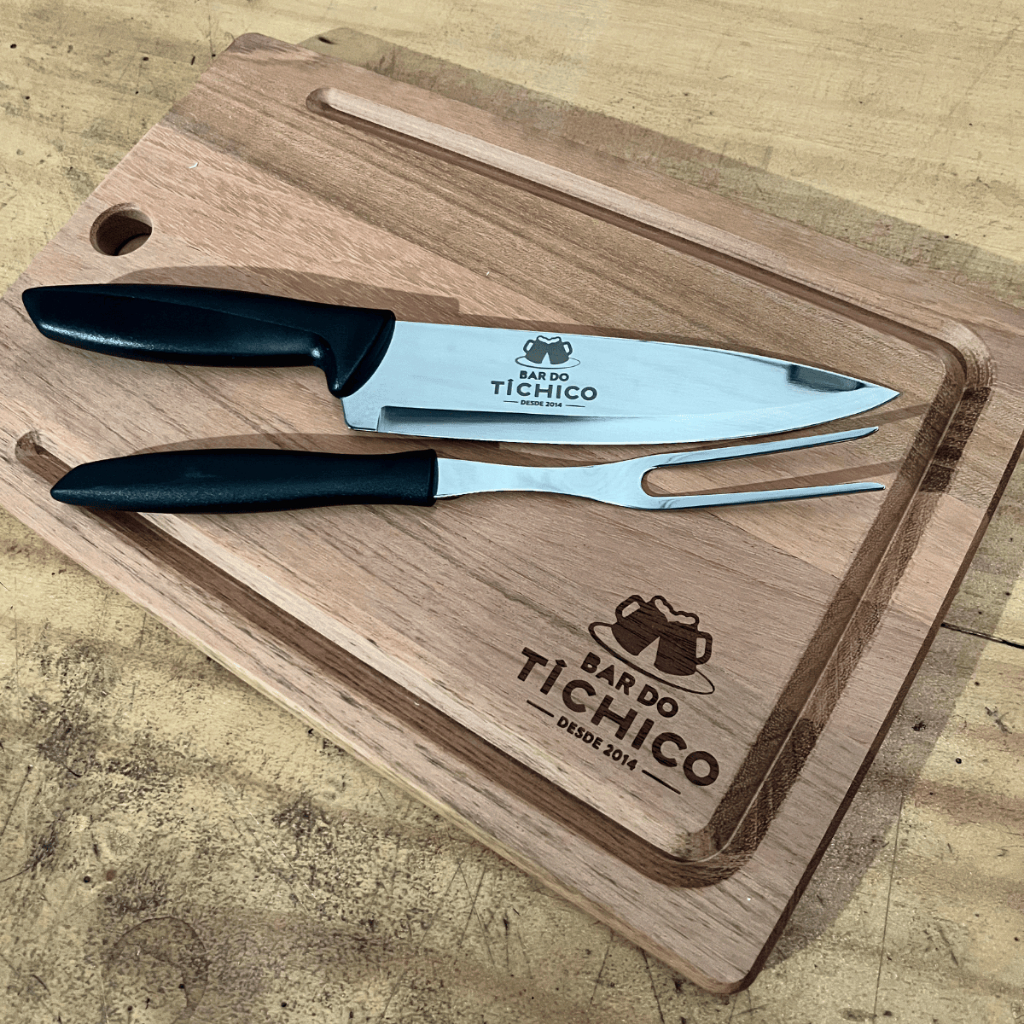 Kit Churrasco Tramontina Personalizado Nome Time ou Logo - Tábua Garfo e Faca
