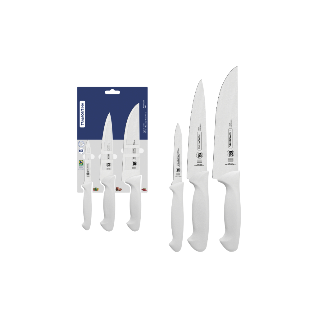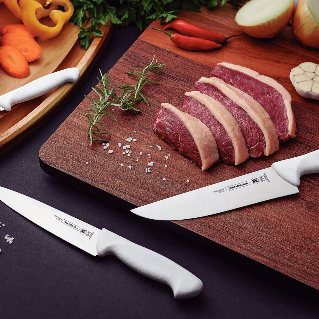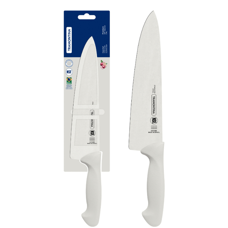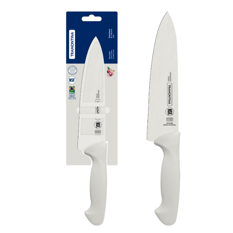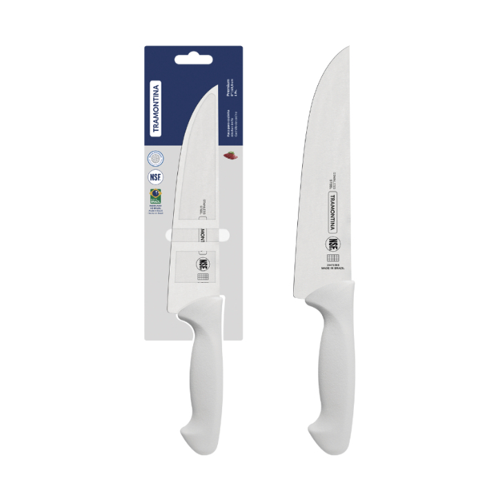 Facas Tramontina Premium Chef Para Carne Em Inox Personalizada Com Nome Logo - Cabo Branco