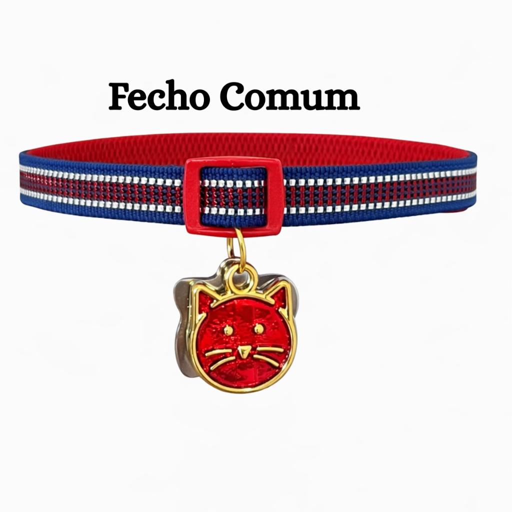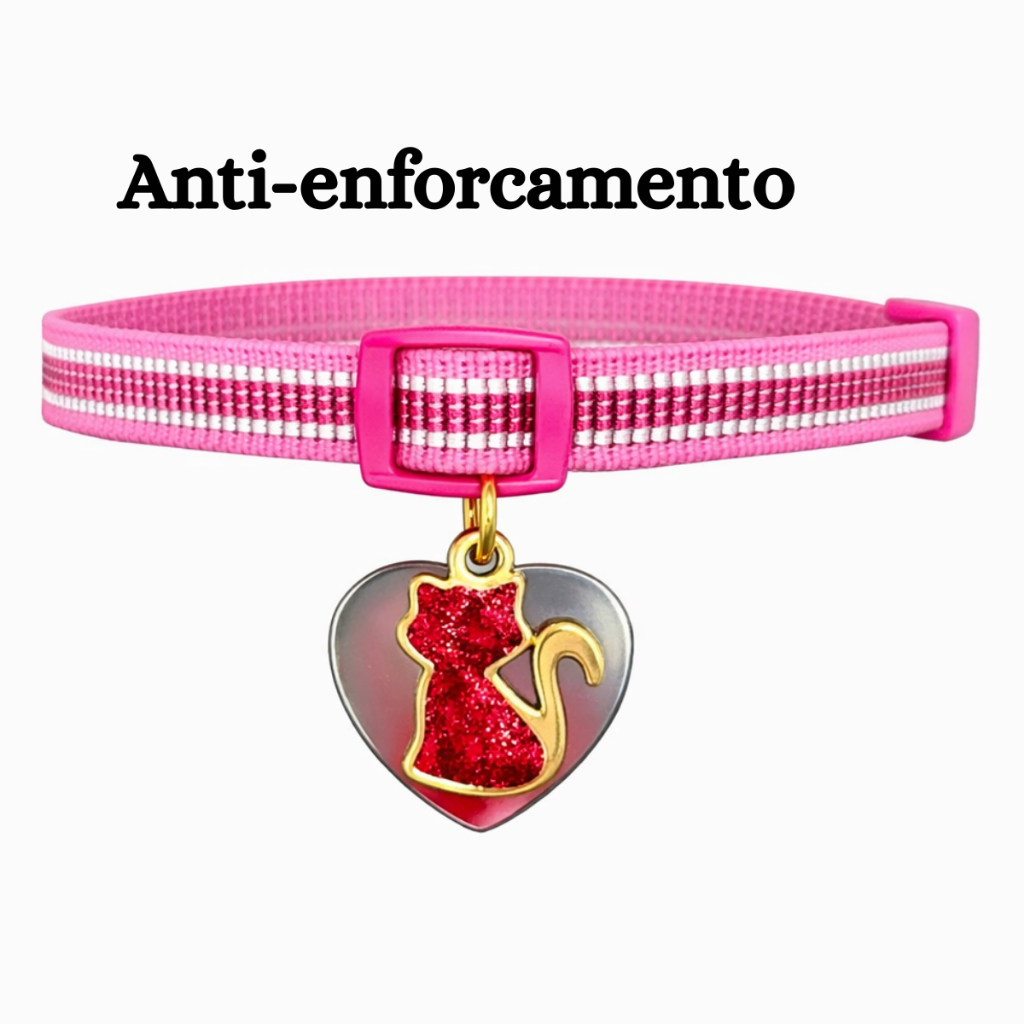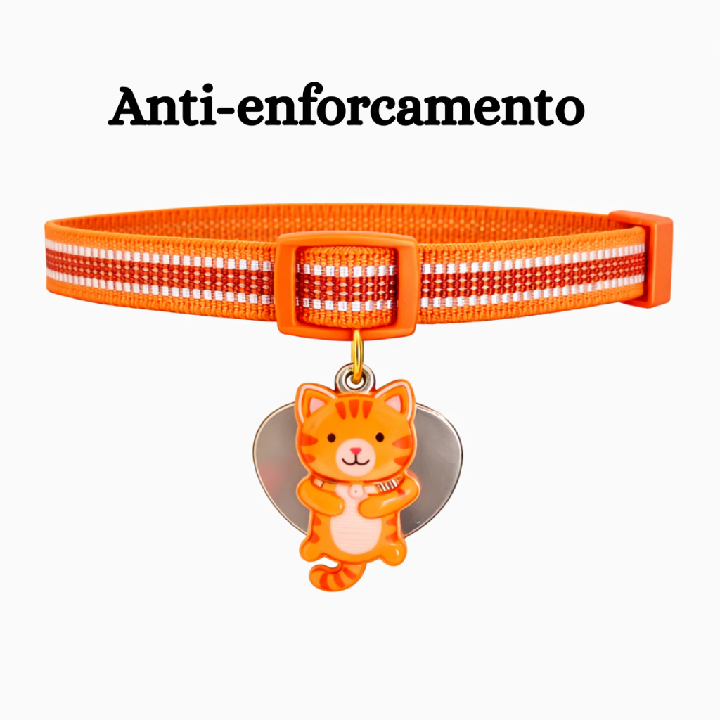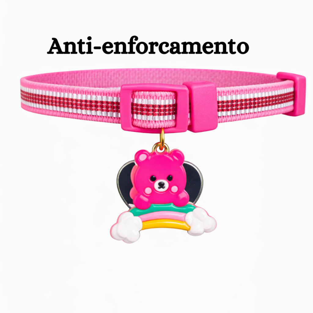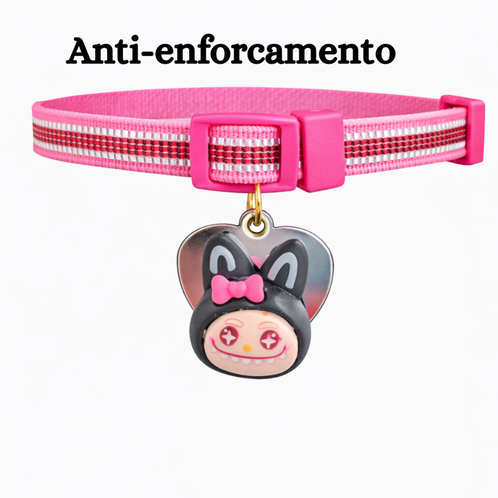 Coleira Para Gato e Cachorro Com Pingente Personalizada (Nome Telefone) Anti Enforcamento Elástico