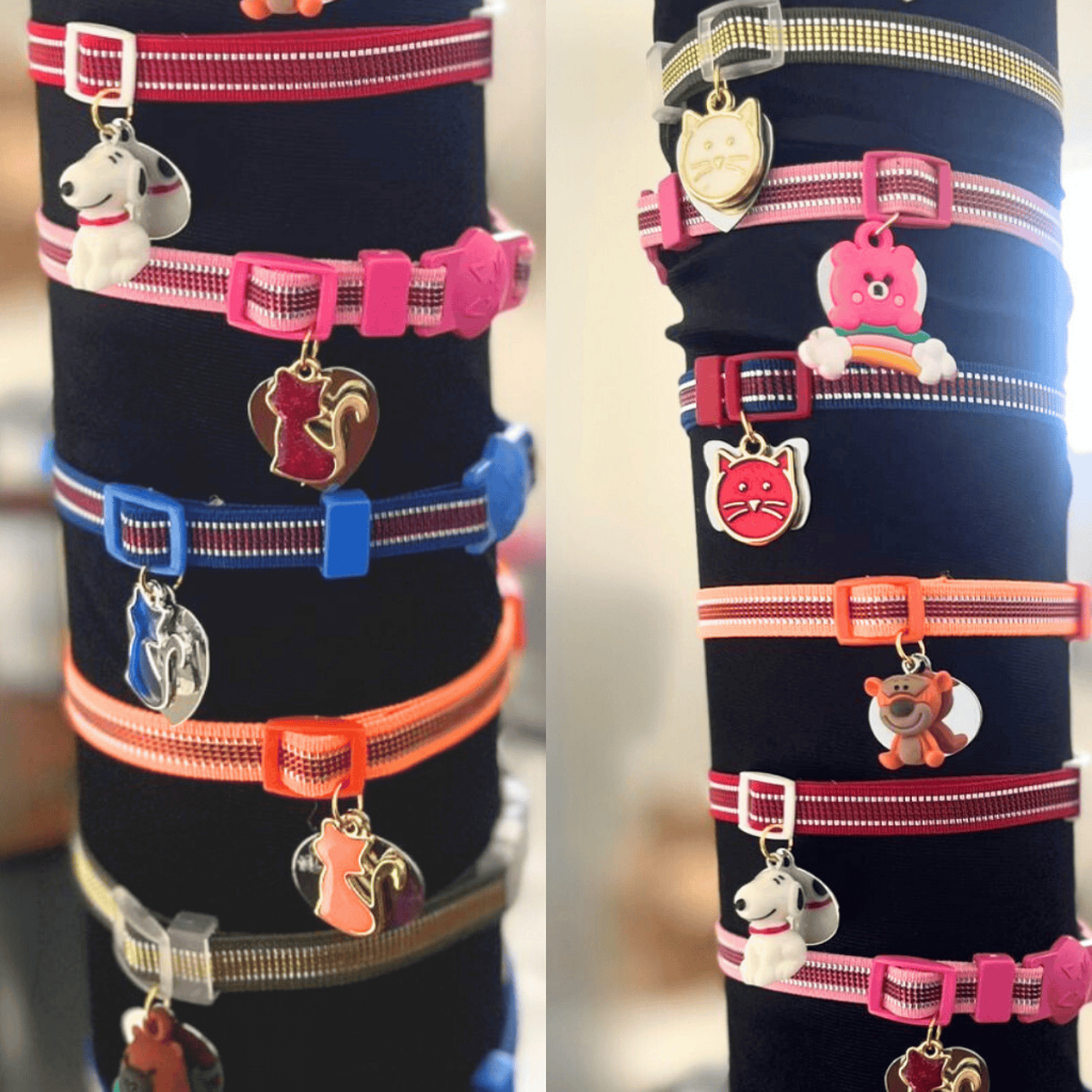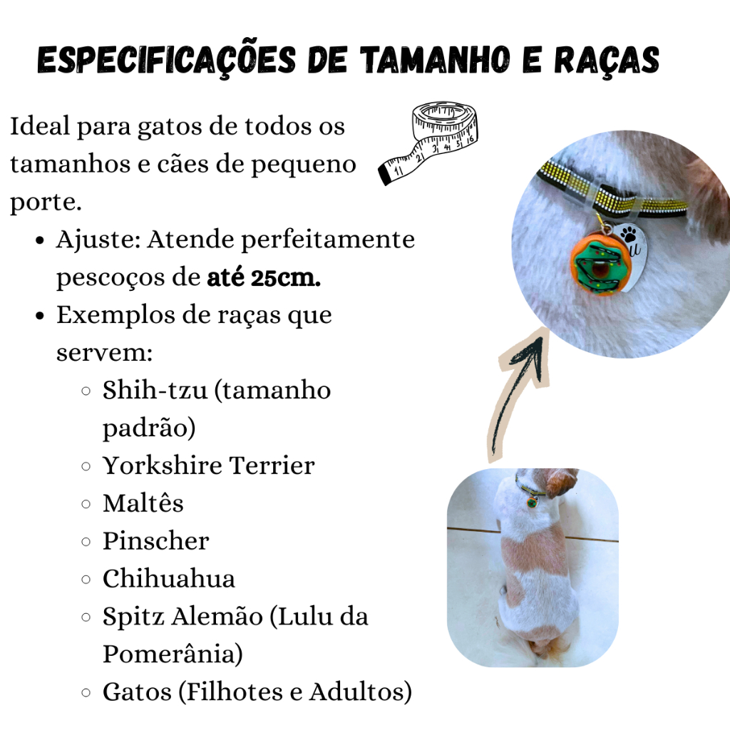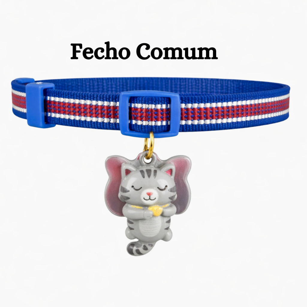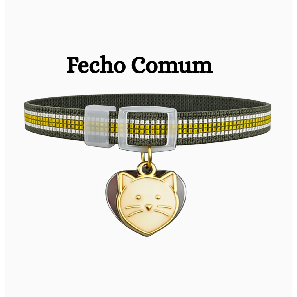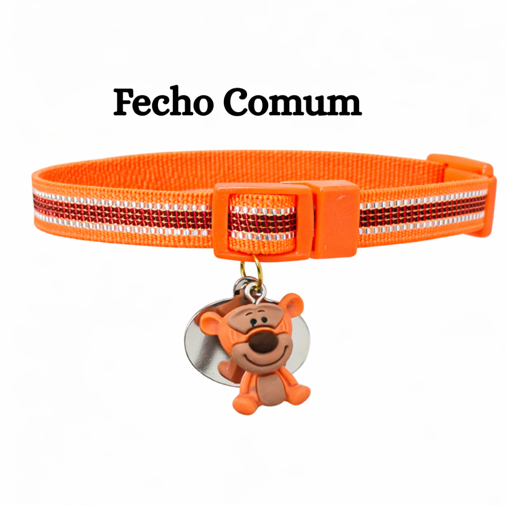 Coleira Para Gato e Cachorro Com Pingente Personalizada (Nome Telefone) Anti Enforcamento Elástico