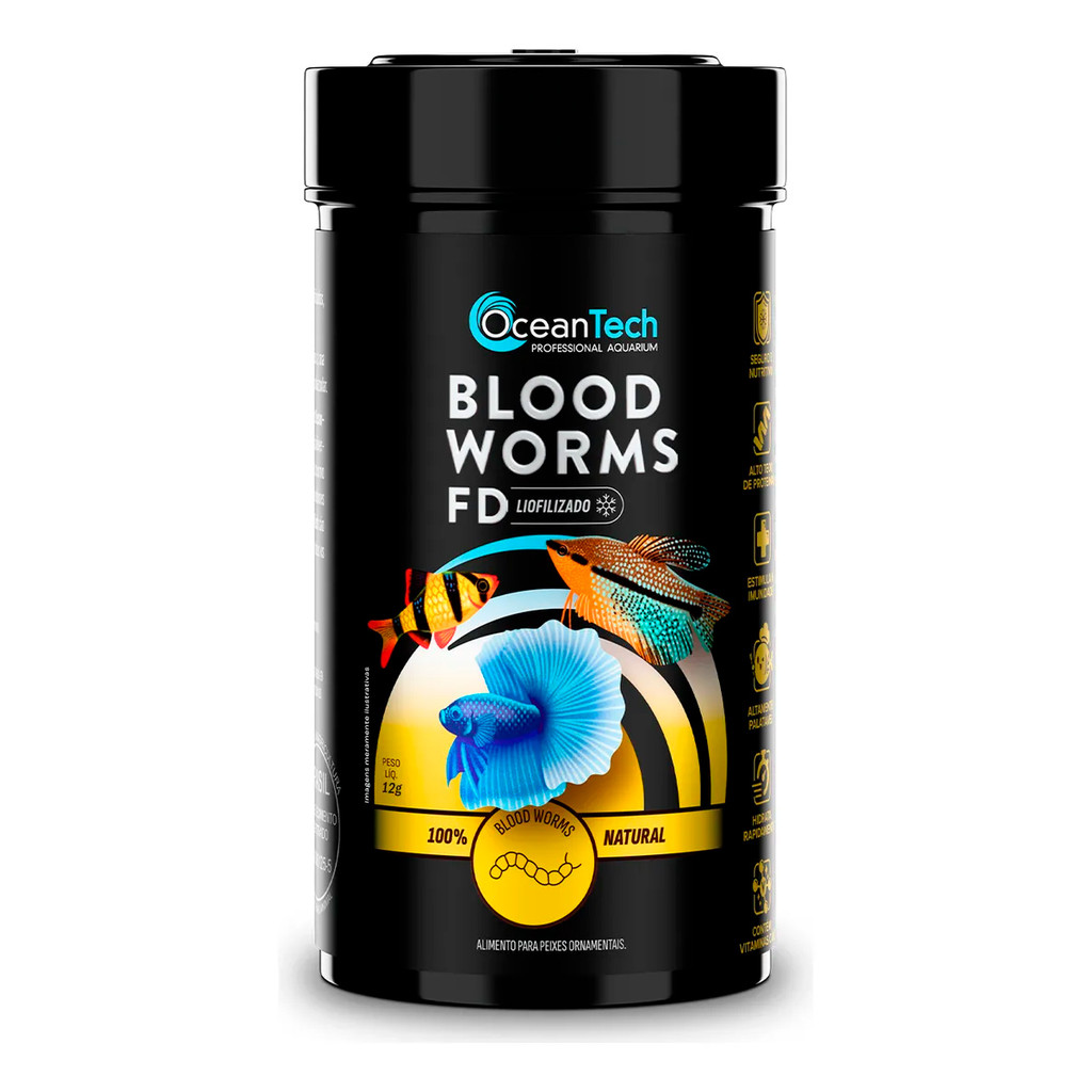 Ração Ocean Tech Blood Worms Alimento Liofilizado Peixes 12g