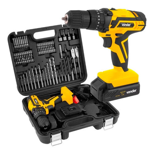 Parafusadeira Furadeira a Bateria 12V com Impacto Vonder com 74 Peças PFV074 Bivolt