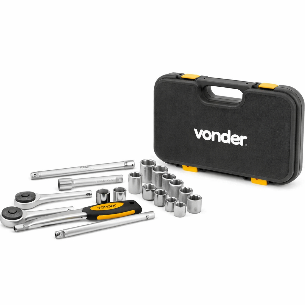 Jogo De Soquetes Estriados Encaixe 1/2" com 22 Peças Vonder
