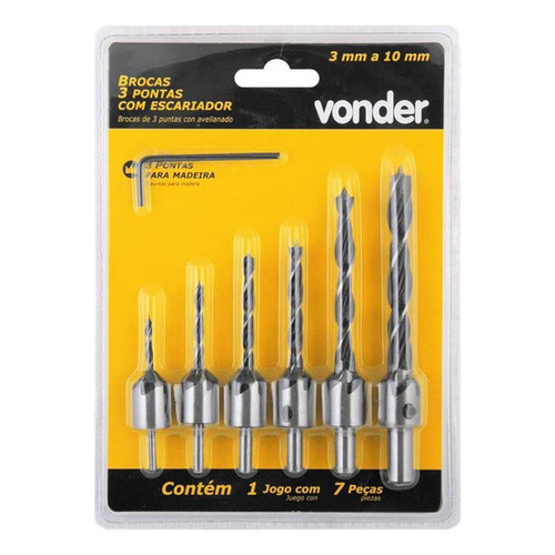 Jogo de brocas 3 pontas com escareador com 7 peças VONDER