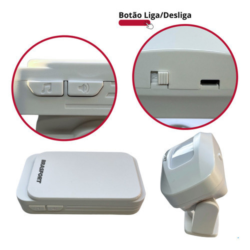 Anunciador de Presença com Sensor 52 Tons Alcance 100 Metros Branco e Preto Brasfort