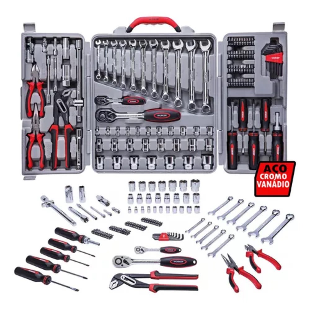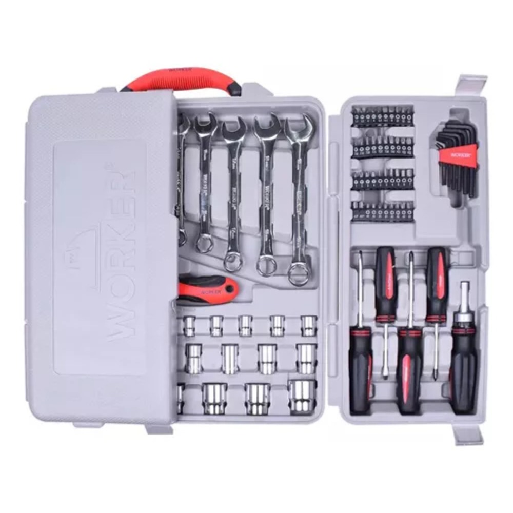 Jogo Ferramentas Kit Com 110 Peças E Maleta Plastica Worker