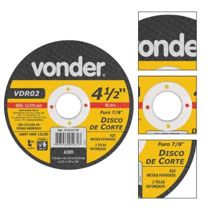 Disco de Corte para Metal Vonder 115mm VDR02 115x3 2x22 23mm Grão G30 Alta Durabilidade