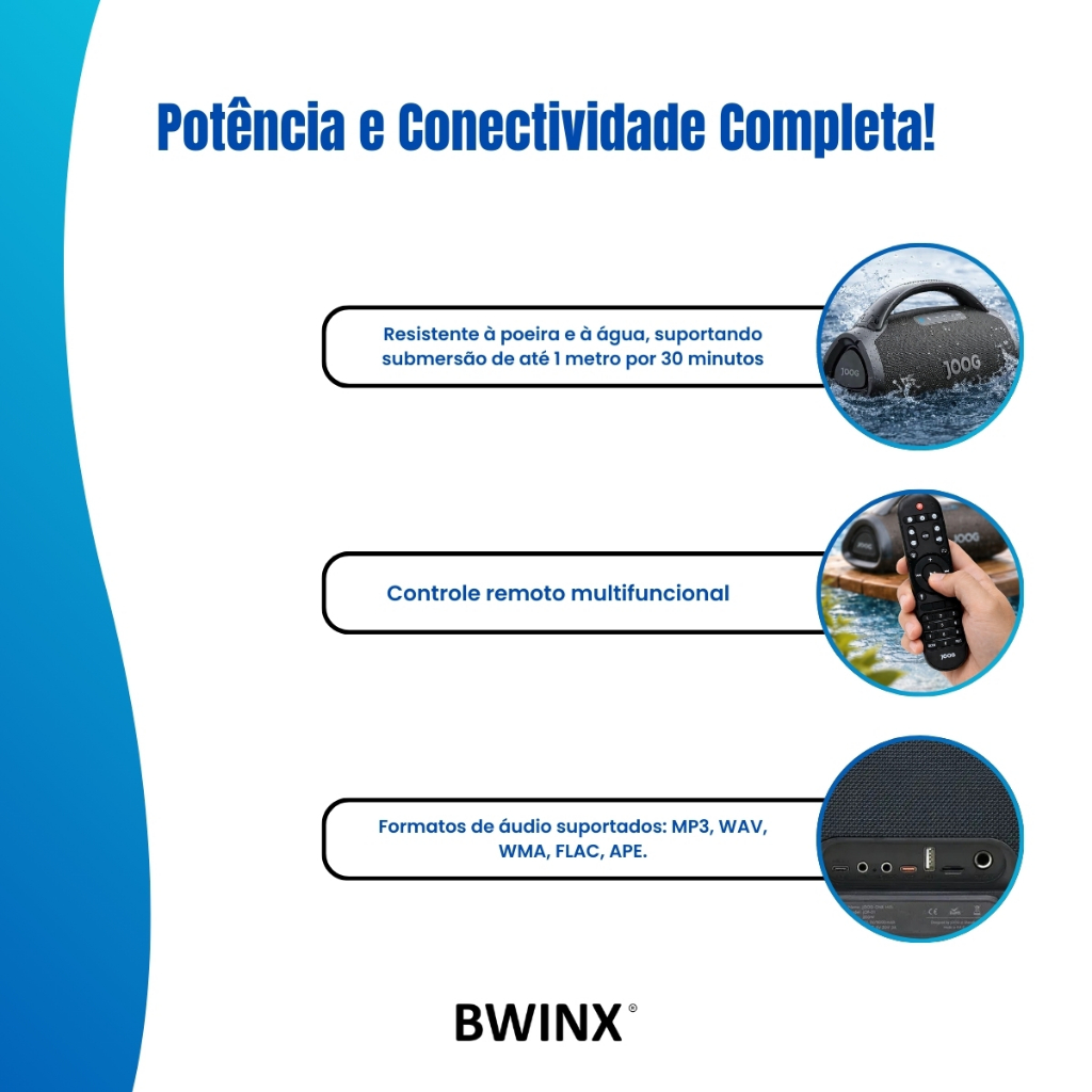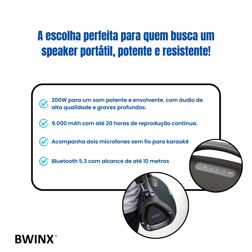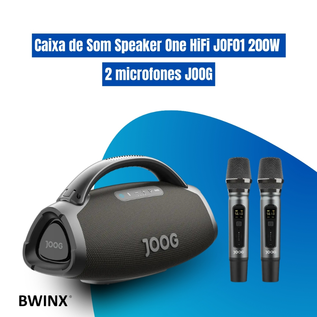 Caixa de Som Speaker One HiFi JOF01 200W com 2 Microfones e Controle Remoto JOOG