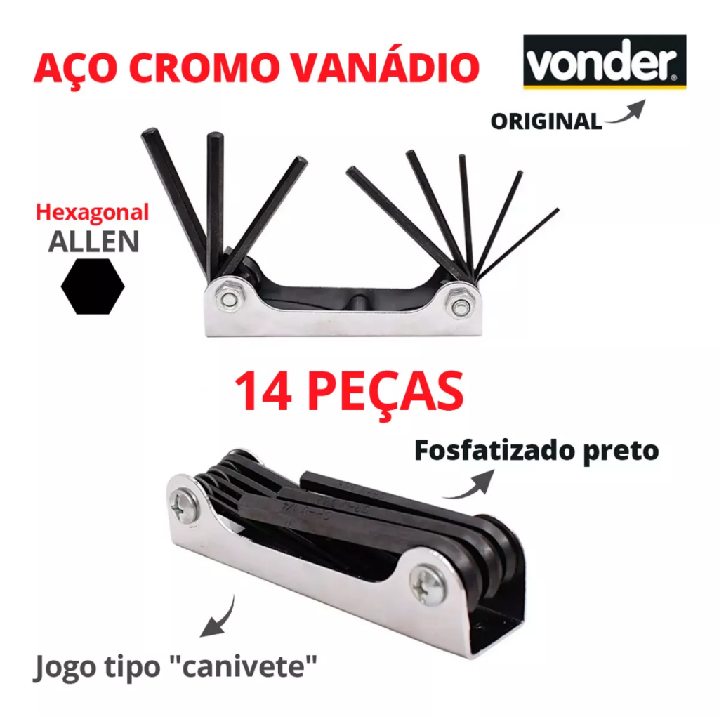 Jogo De Chaves Allen Hexagonal Tipo Canivete 14 Pecas Vonder
