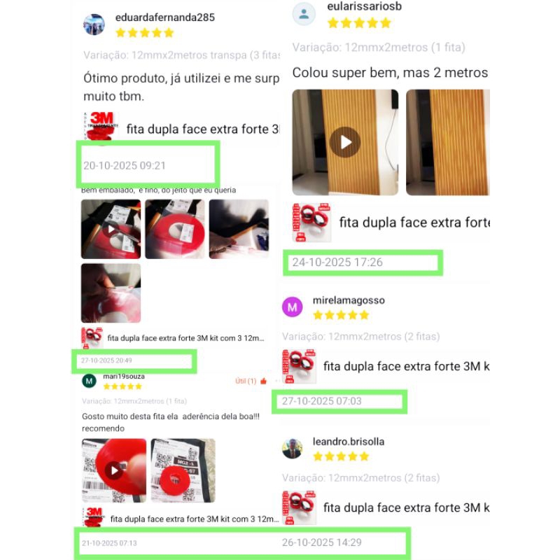 kit 3 fita dupla face extra forte 3M 12mm x 2metros 6 metros total