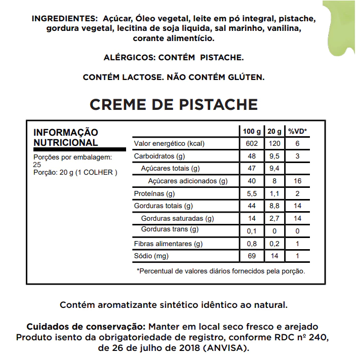 Creme Recheio Pistache Para Açaí Pizza Torta Pipoca Sorvete Confeitaria 500g