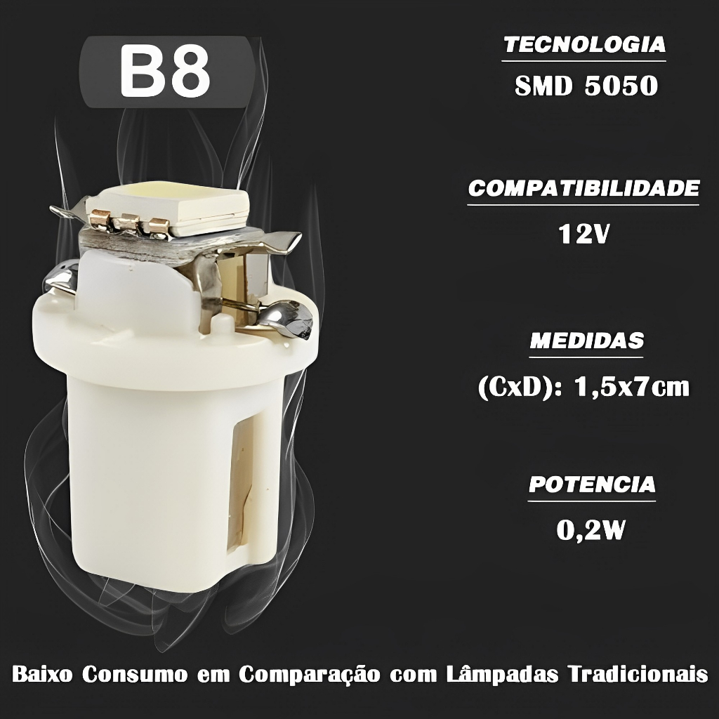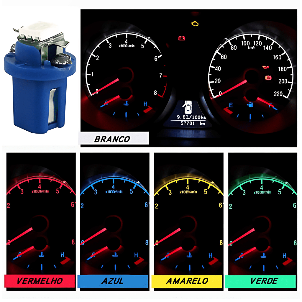 4x Lâmpada Painél T5 Led B8.5 12v 5050 Cores Painél diversas cores