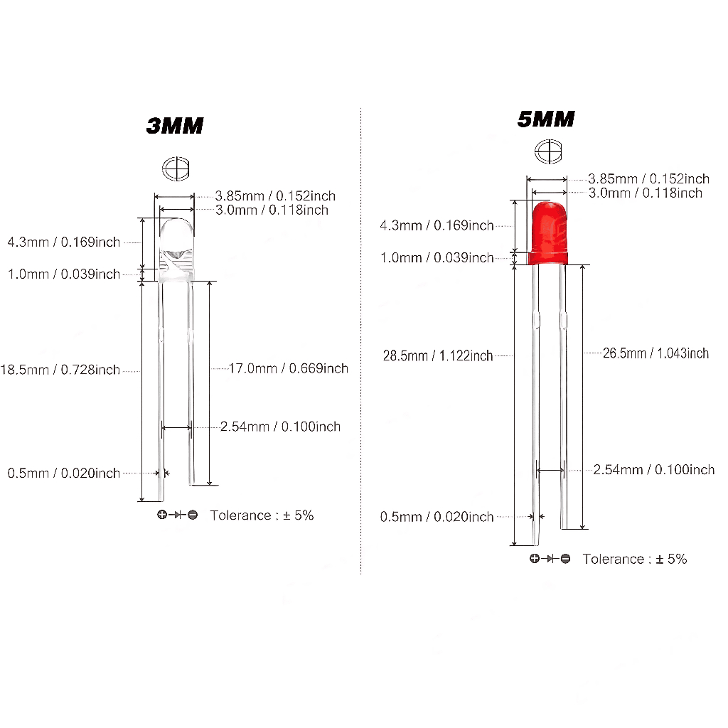 Led 5mm Acrílica Azul Amarelo Branco Verde Vermelho 1 Peças