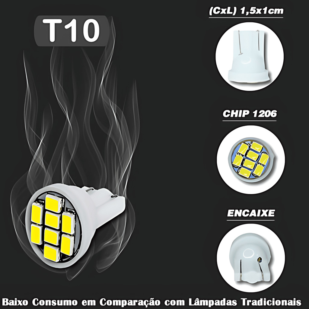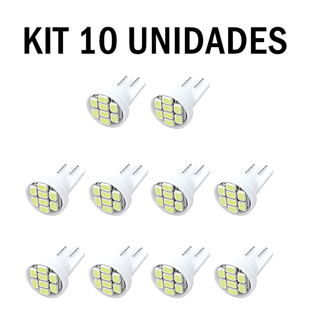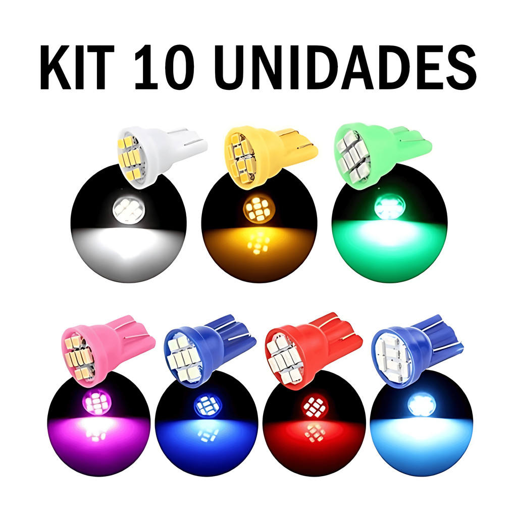 Kit 10 Lampada T10 8 Led W5w Amarelo 12v